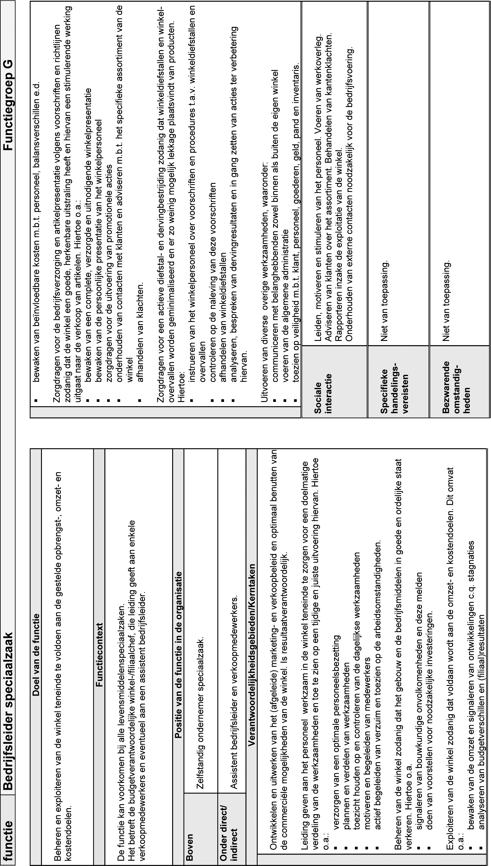 De definitie van functioneel leidinggeven, zoals vermeld in bepaalde andere functiedocumenten: De door het winkelmanagement gedelegeerde bevoegdheid om bepaalde functionarissen aan te sturen bij een bepaalde activiteit of bepaalde werkzaamheden. Het gaat hierbij dus om de situatie waarin het management formeel deze bevoegdheid heeft gedelegeerd en niet om bijvoorbeeld het geven van aanwijzigen aan collega’s in een gelijkwaardige samenwerkingssituatie.