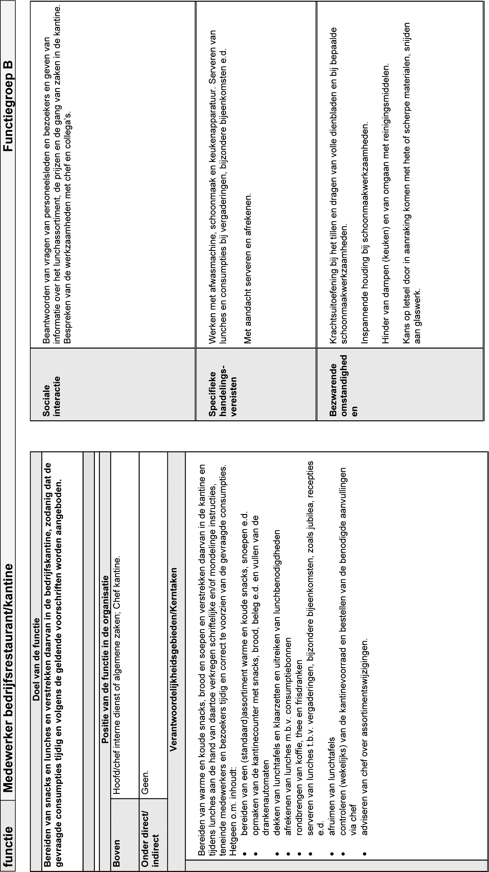 • de referentiefuncties zijn ingedeeld in verschillende maar opeenvolgende groepen, bepaald dient te worden met welke referentiefunctie de in te delen bedrijfsfunctie het meest overeenstemt