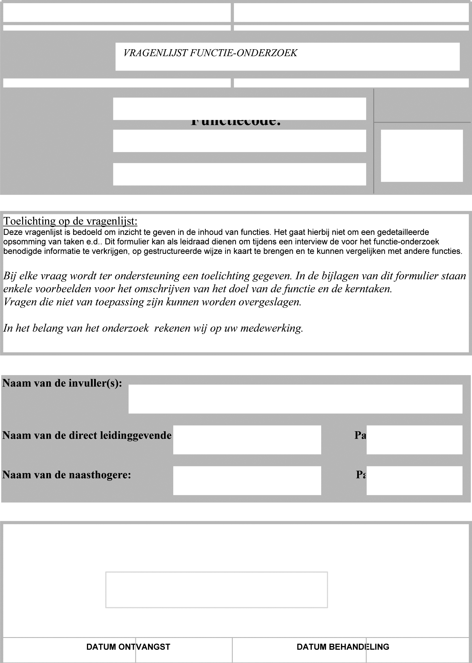 – Het door werkgever en werknemer ondertekende vragenformulier functie-onderzoek