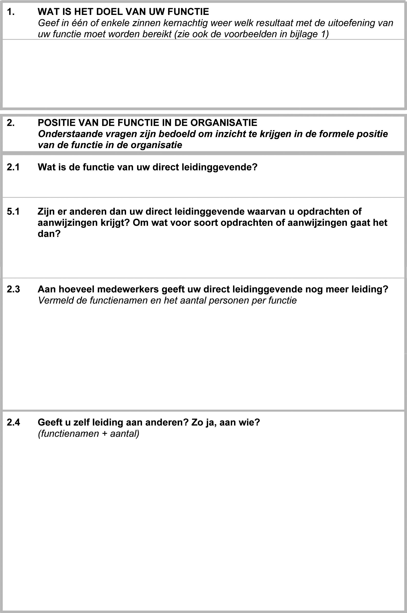 Een hulpmiddel bij het verzamelen en vastleggen van informatie over de in te delen functies is het ORBA®-vragenformulier (3.1)
