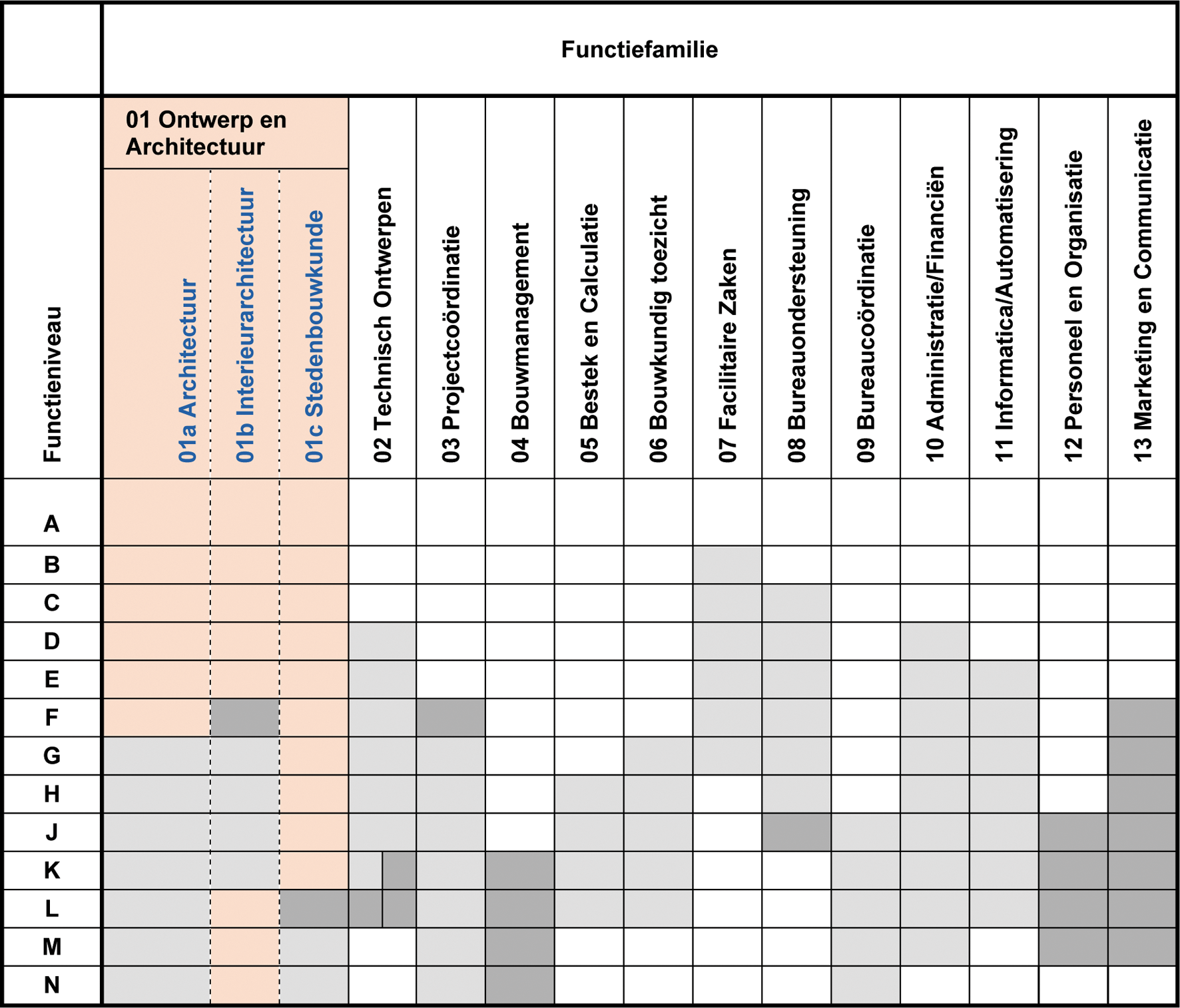 Het Handboek Functie-indeling Architectenbureaus ook wel functiehandboek genaamd, is een ijkpunt om functies te beschrijven en in te schalen. Het geheel vormt een samenhangend ‘functiebouwwerk’. Het functiehandboek is onderdeel van de cao. De bijbehorende salarisschalen staan in de cao.