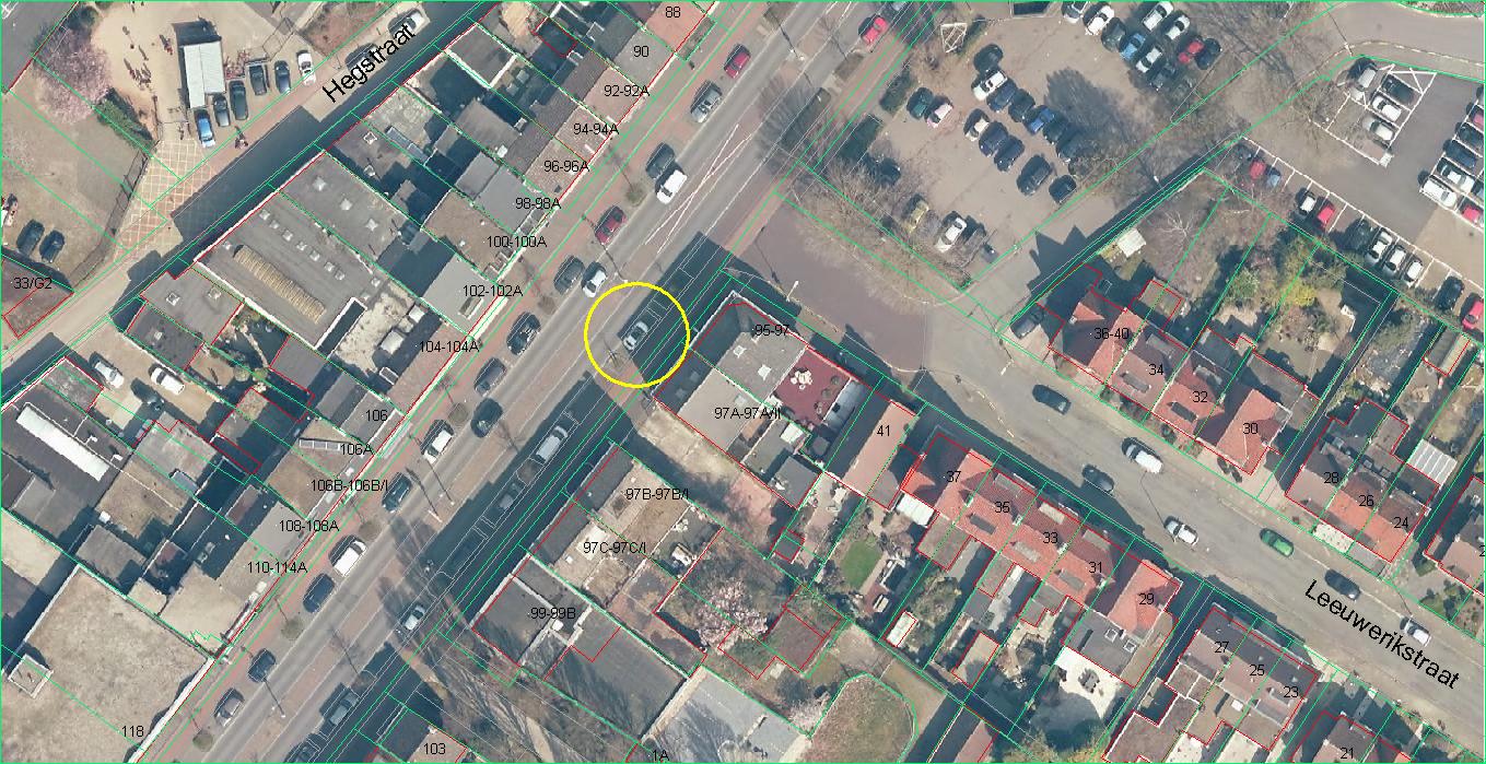 Op de foto’s behorend bij het verkeersbesluit is de situering van de beoogde parkeerplaats aangegeven.