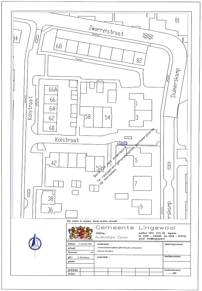 - de gemeente een aanvraag heeft gekregen voor een gehandicaptenparkeerplaats op kenteken in de van Kolstraat ;