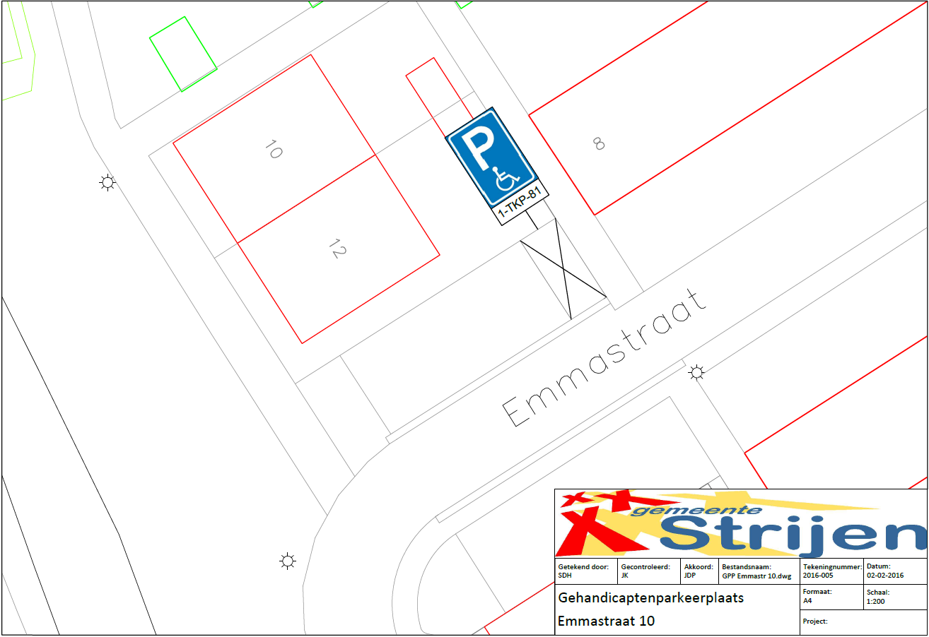Een gehandicaptenparkeerplaats op kenteken ter hoogte van Emmastraat 8-12 realiseren;