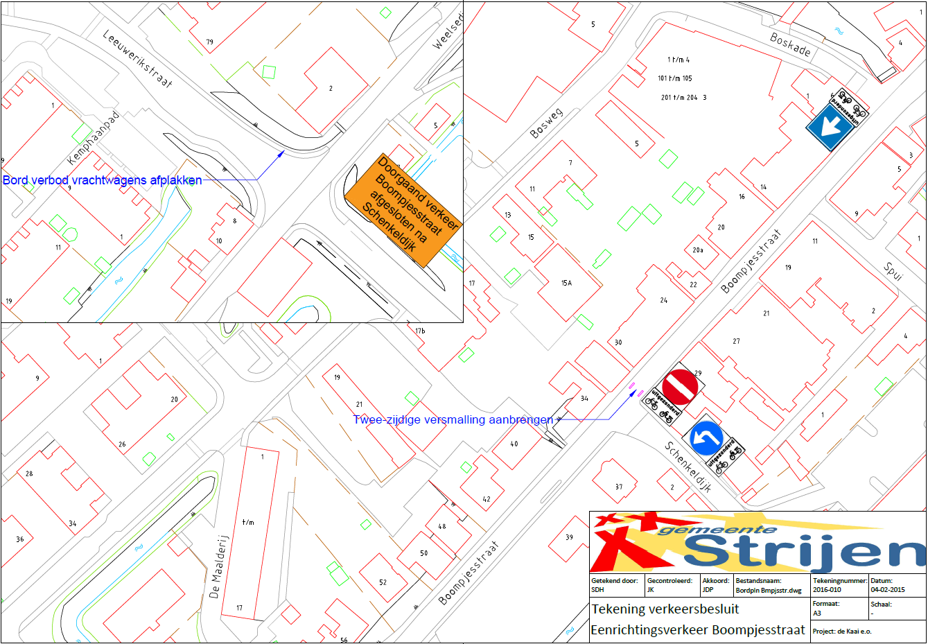 Verplichte rijrichting instellen uitgezonderd fietsers en bromfietsers vanaf de Schenkeldijk linksaf naar de Boompjesstraat;
