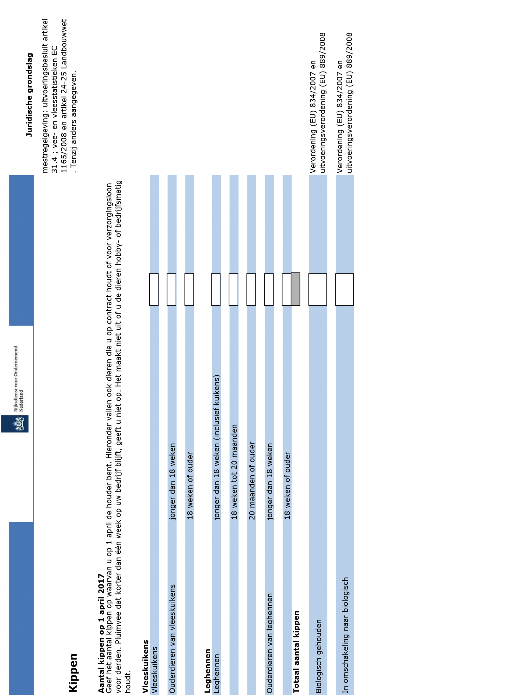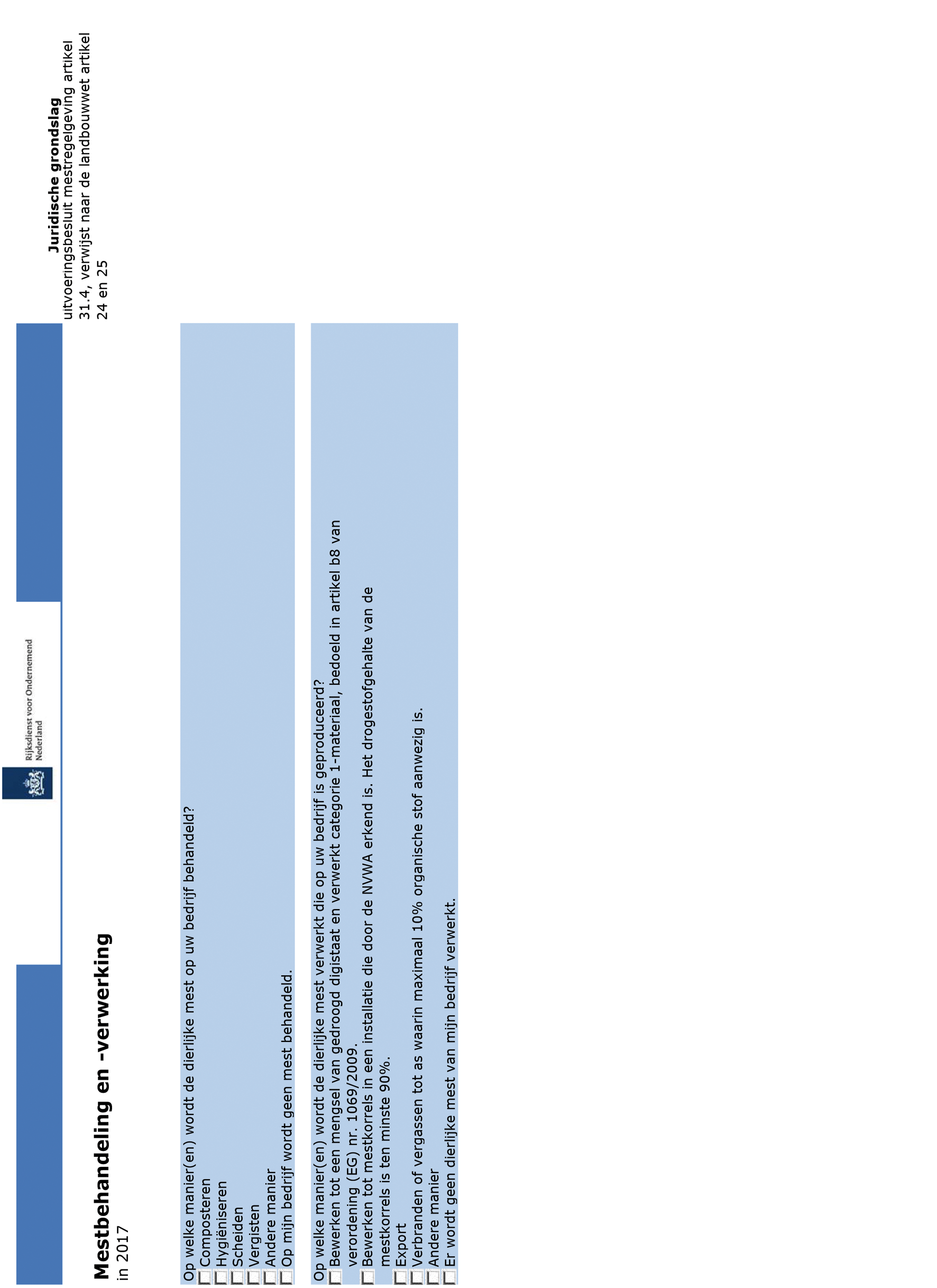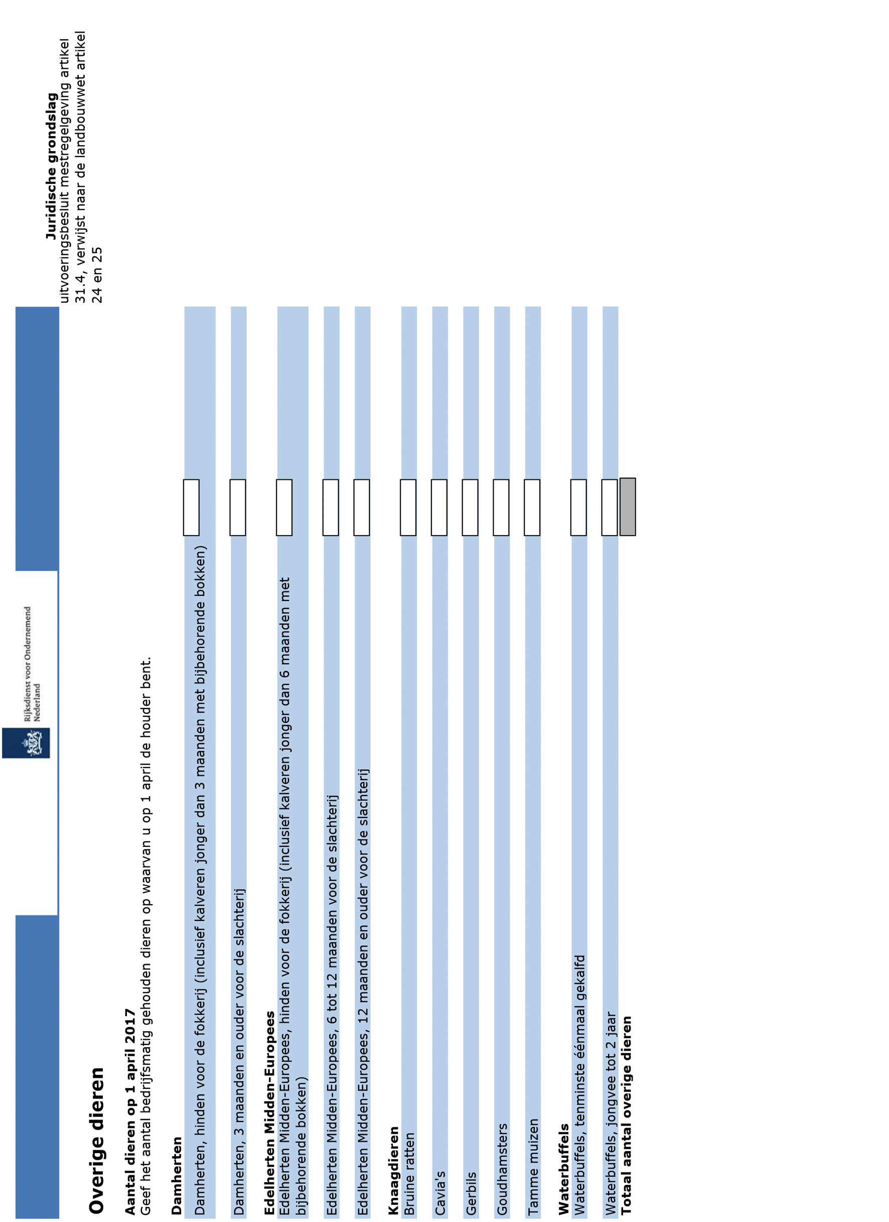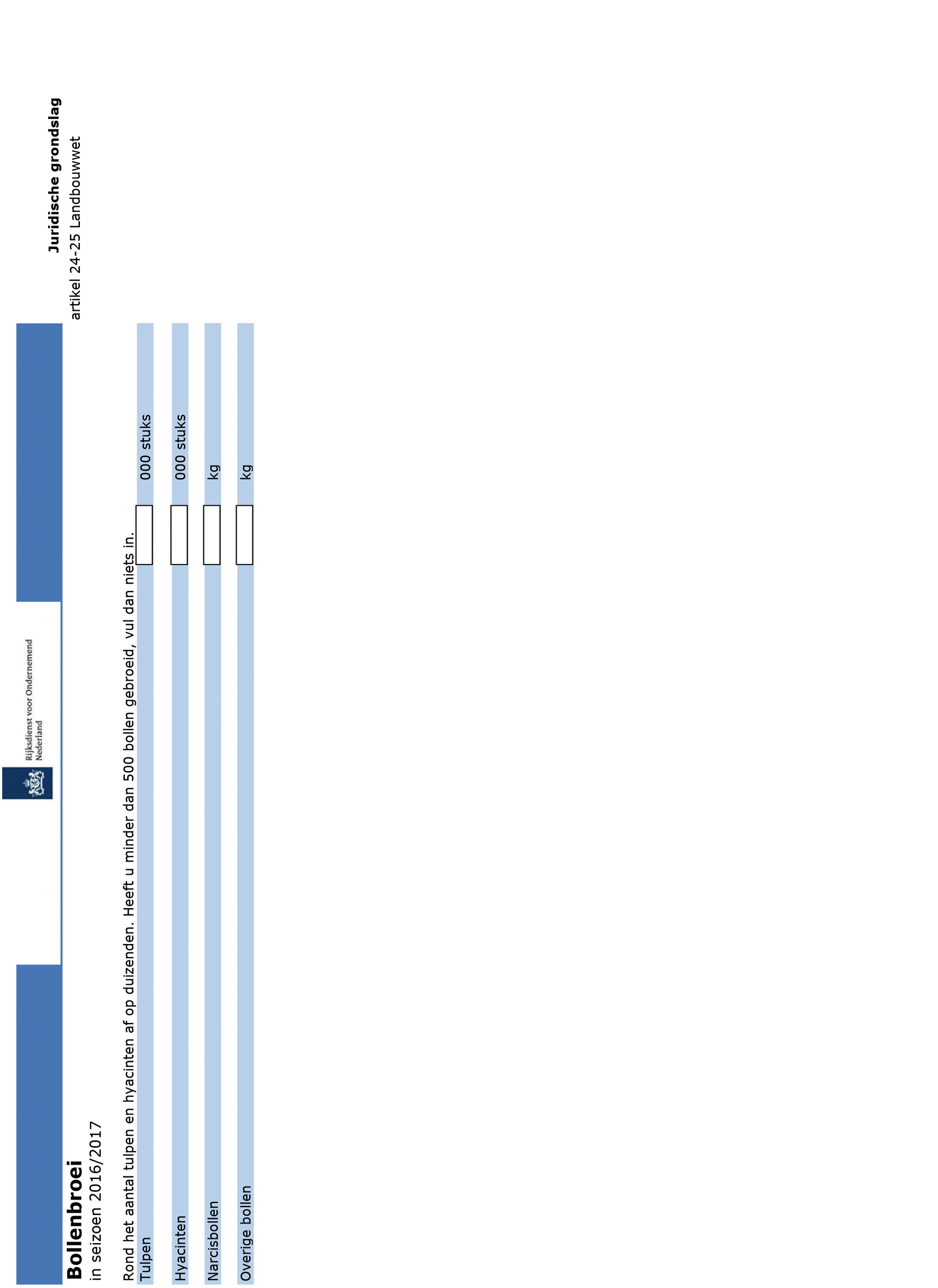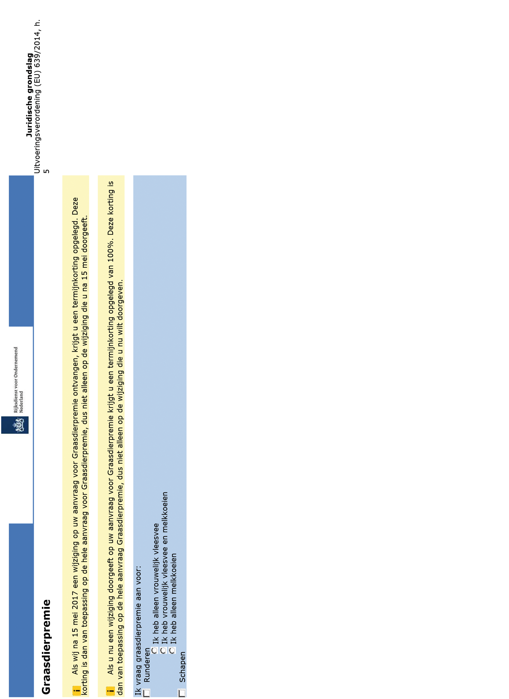 De bij deze regeling gepubliceerde vraagstelling vormt de grondslag om in 2017 gecombineerd de opgave te doen voor de landbouwtelling op grond van de Landbouwwet, de opgave gebruik gewaspercelen op grond van het Uitvoeringsbesluit Meststoffenwet, de verzamelaanvraag op grond van de Uitvoeringsregeling rechtstreekse betalingen GLB, de aangifte van de CO2-jaarvracht van glastuinbouwbedrijven op grond van de Wet milieubeheer, de opgave voor aanspraak op betalingen uit het Diergezondheidsfonds op grond van de Gezondheids- en welzijnswet en voor het verstrekken van informatie of een betaalverzoek in het kader van twee steunregelingen die onderdeel zijn van het plattelandsontwikkelingsprogramma.