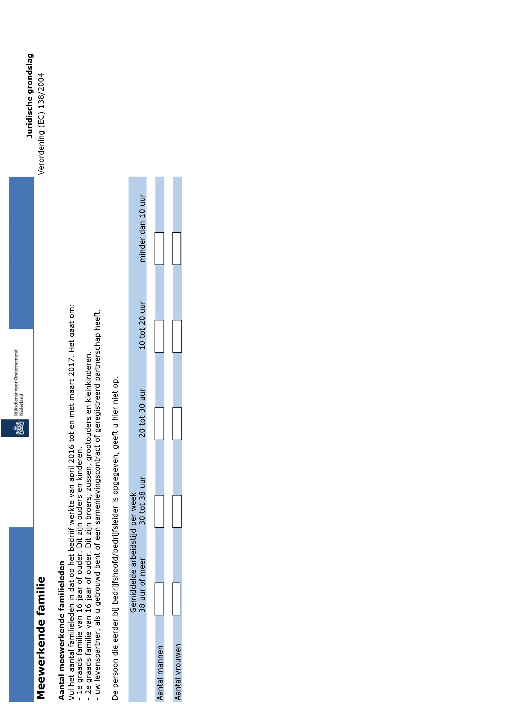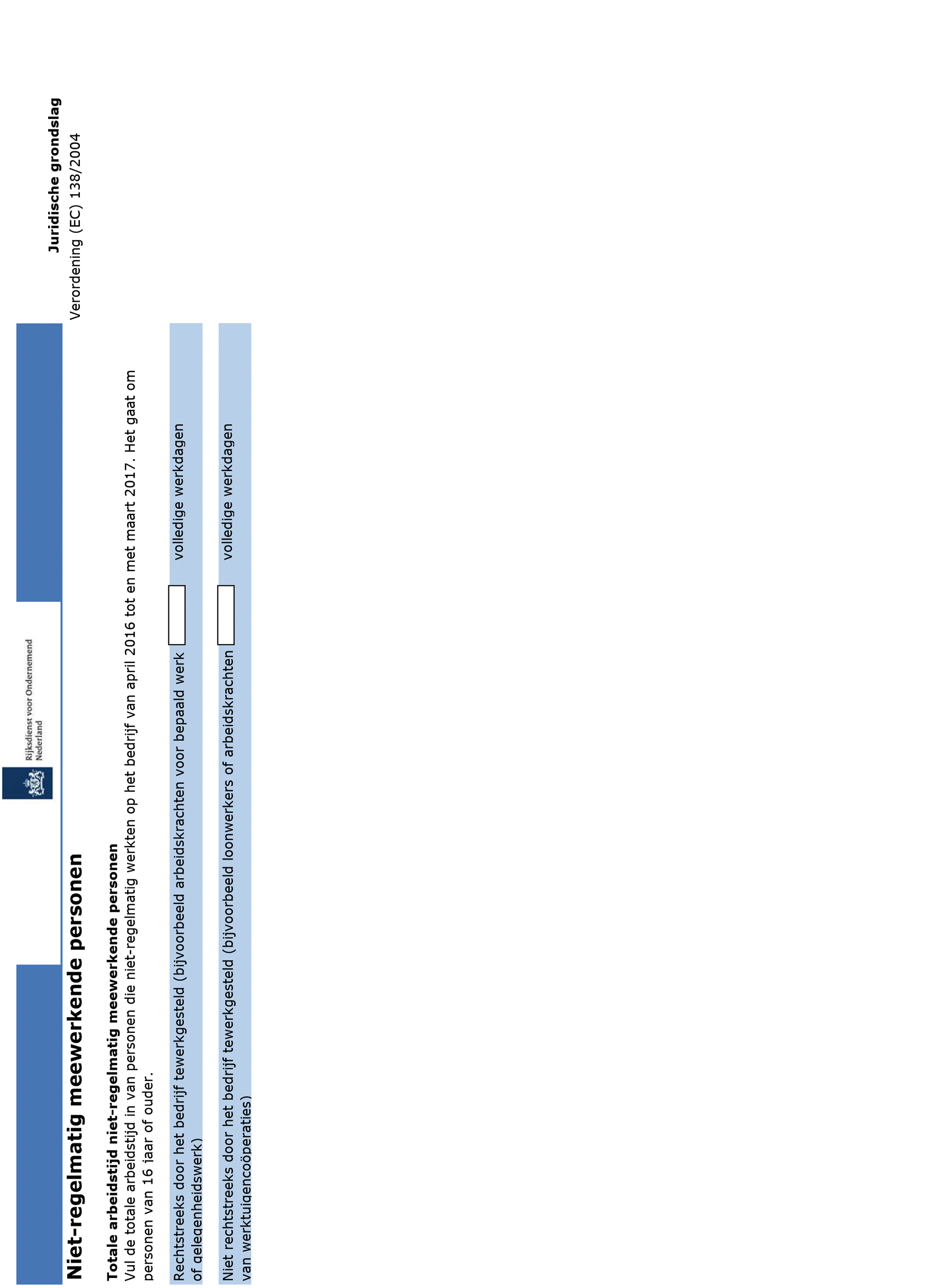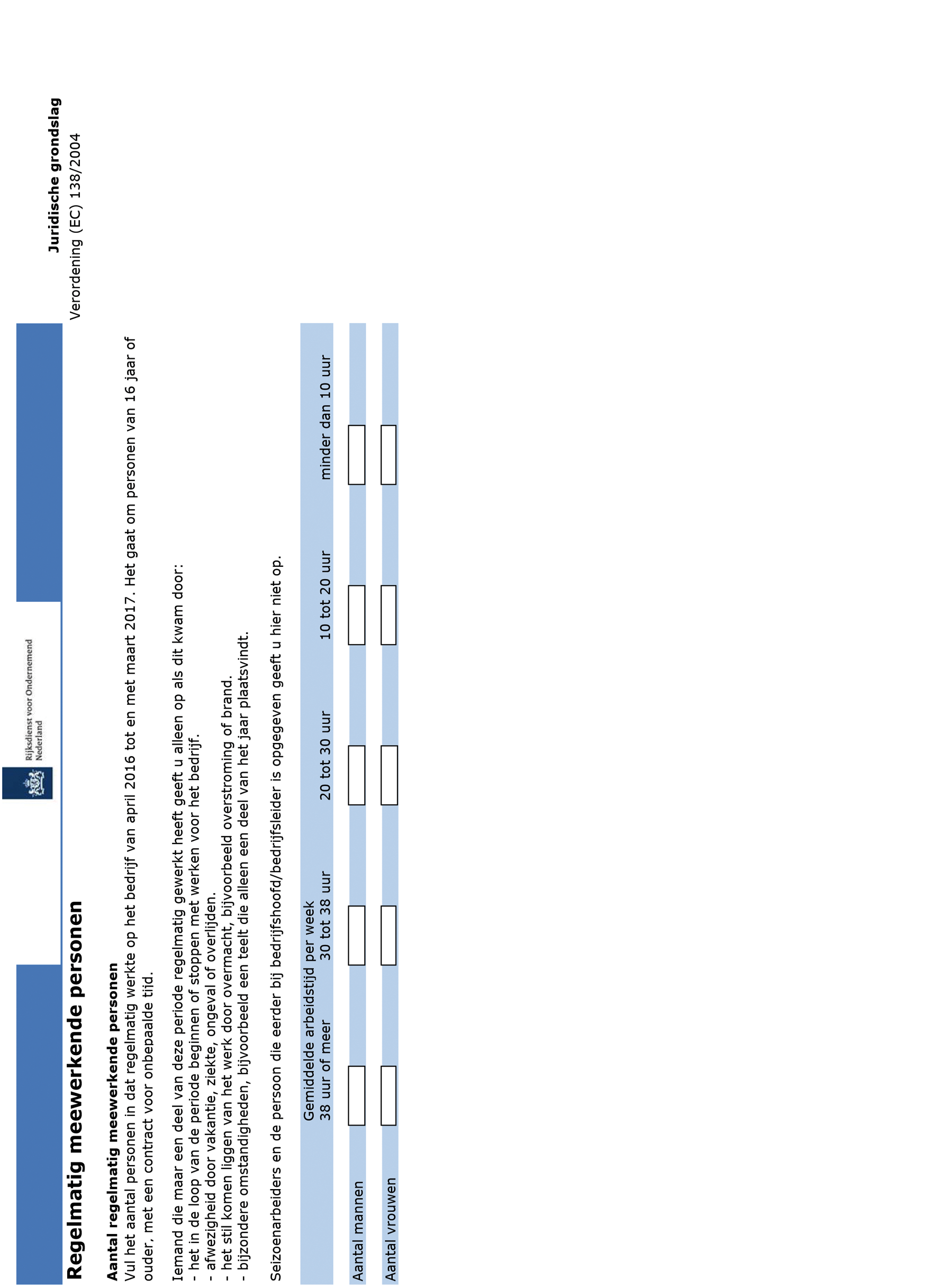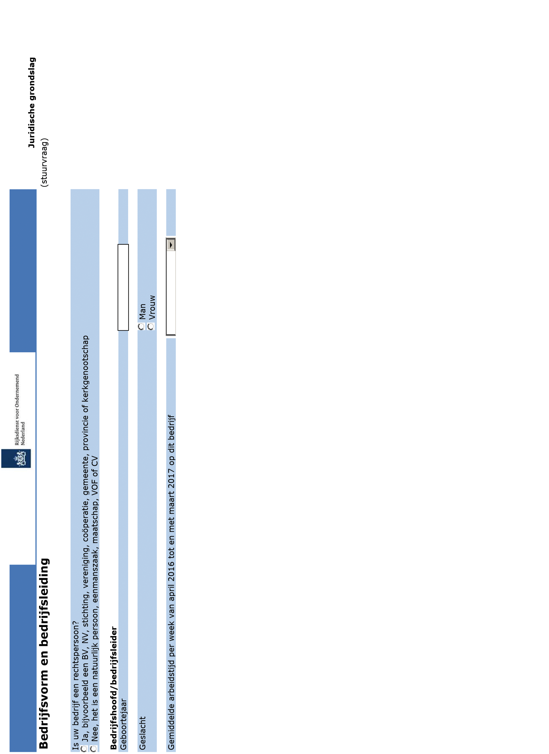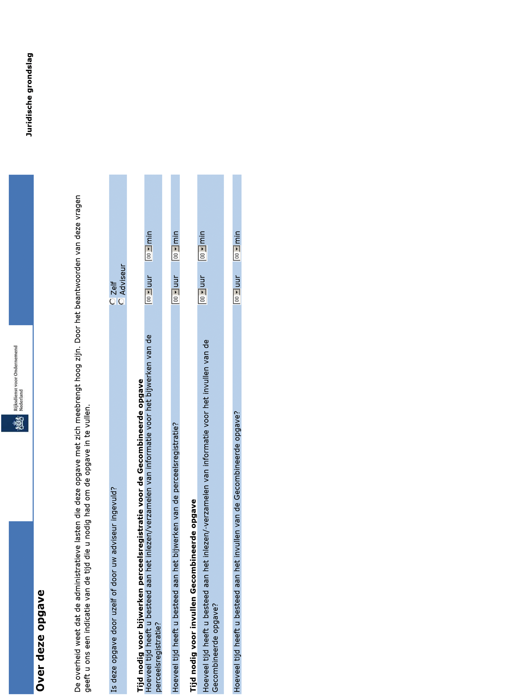 Gegevens uit de gecombineerde opgave worden verzameld ten behoeve van statistisch en beleidsmatig inzicht, voor handhavingsdoeleinden evenals om adequaat te kunnen handelen ten tijde van crises. Het specifieke juridische kader met betrekking tot de volgende vragen is te vinden in de volgende wet- en regelgeving: