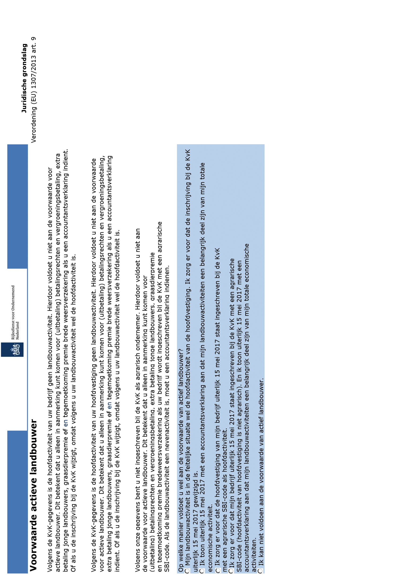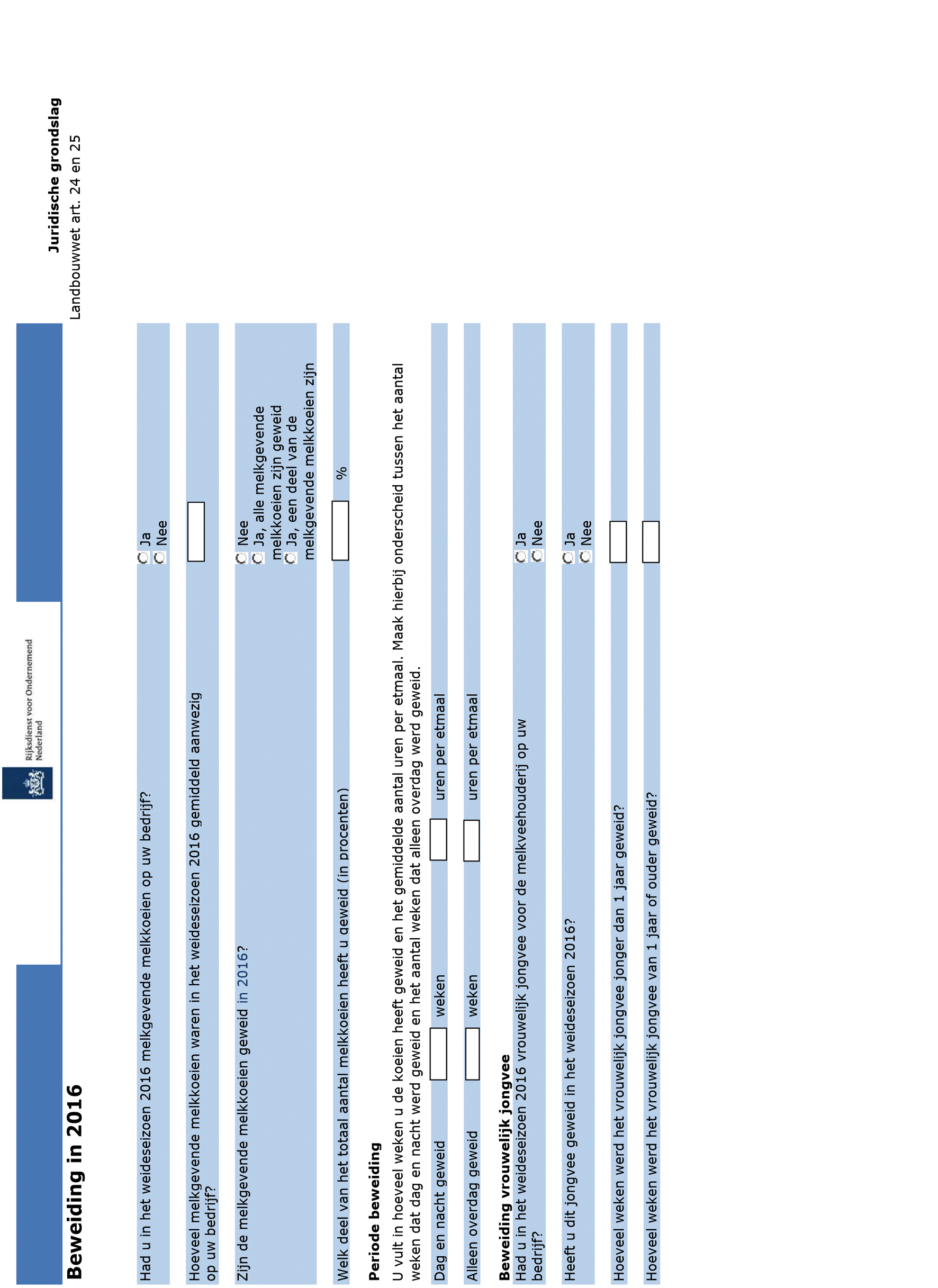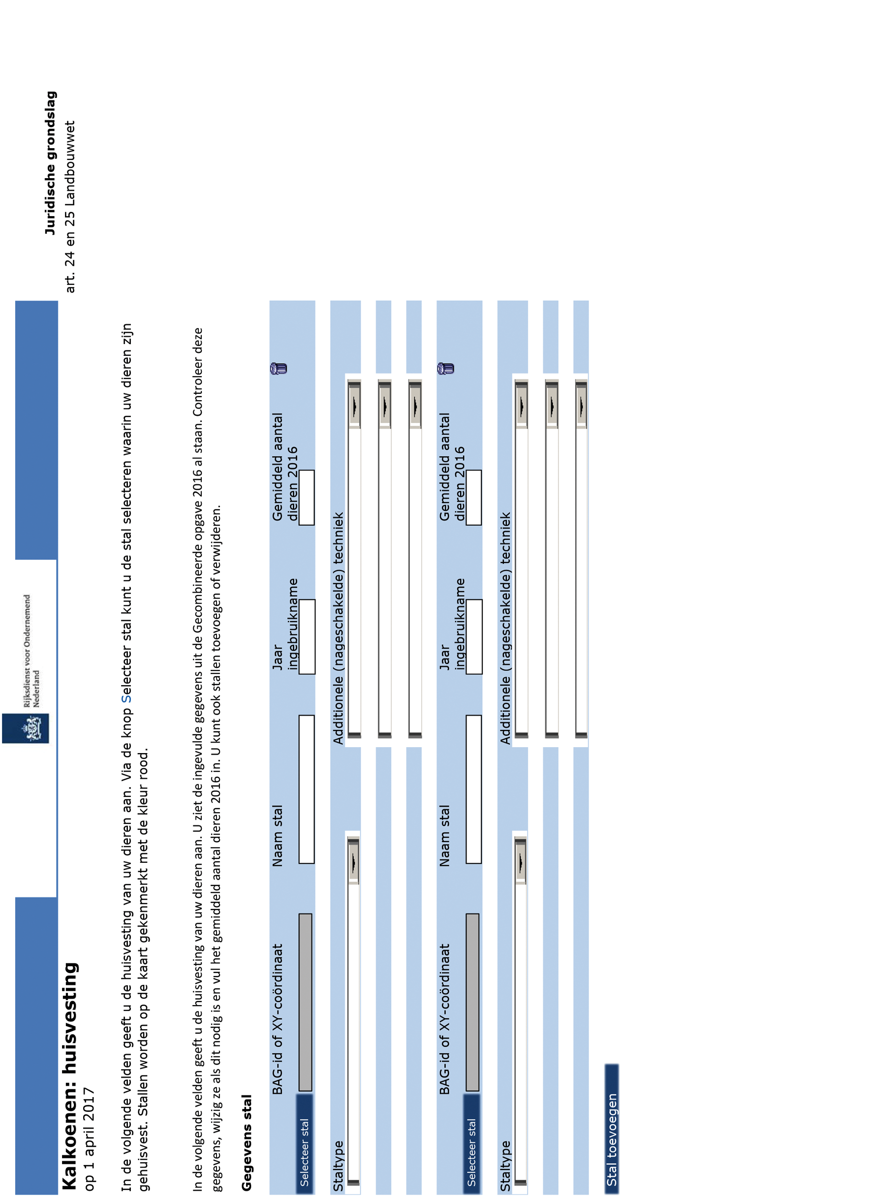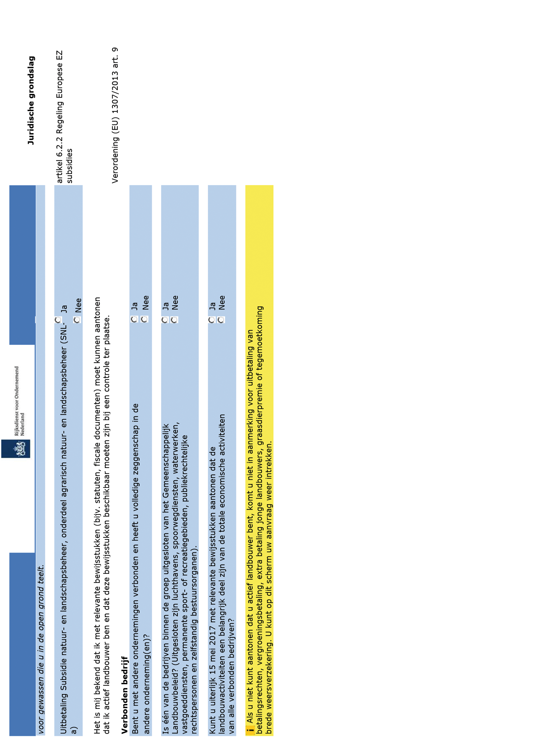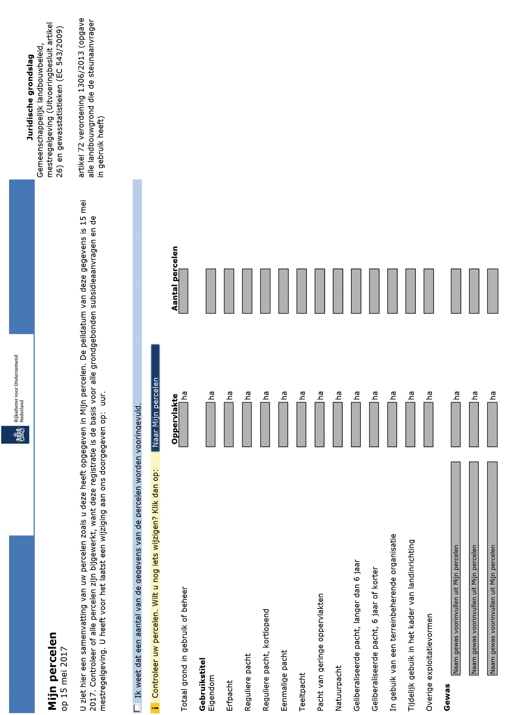 Op basis van de laatstelijk in 2016 verstrekte en geverifieerde informatie worden gegevens op het elektronische formulier zoveel als mogelijk al vooraf ingevuld, waarbij de landbouwer deze gegevens alleen nog moet controleren.