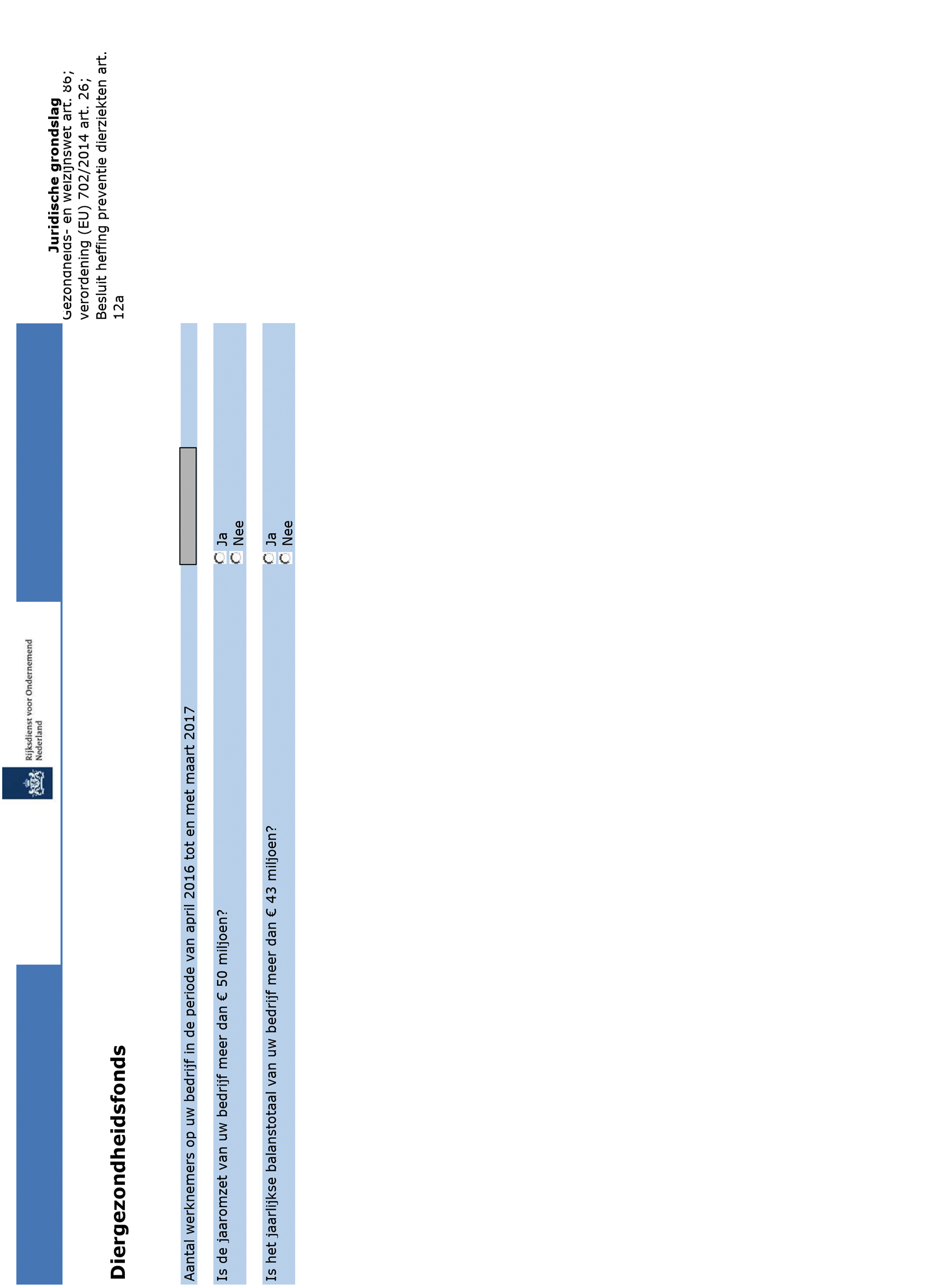 Houders van kippen, kalkoenen, eenden, schapen, geiten, runderen en varkens moeten door middel van een verklaring aangeven of zij aanspraak willen maken op betalingen uit het Diergezondheidsfonds. Deze betalingen zijn veelal in de vorm van gesubsidieerde diensten voor maatregelen en voorzieningen die verband houden met preventie van besmettelijke dierziekten. Het betreft ook de (tegemoetkomingen in de) kosten van vaccins, bloedonderzoeken, tests en dergelijke aan een uitbraak van een besmettelijke dierziekte verbonden maatregelen, uitgevoerd op grond van de Gezondheids- en welzijnswet voor dieren. Daarbij dienen deze houders aan te geven of hun onderneming een kleine of middelgrote onderneming is. Deze opgaveverplichting vloeit voort uit de Europese eisen die zijn opgenomen in de per 1 juli 2014 gewijzigde Richtsnoeren van de Europese Unie voor staatssteun in de landbouw- en de bosbouwsector en in plattelandsgebieden 2014–2020 (deel II, hoofdstuk 1 art. 1.2.1.3). In navolging van de gecombineerde opgave uit 2016 heeft de opgave betrekking op de periode die loopt van 15 mei 2017 tot 15 mei 2018 en moet deze uiterlijk 15 mei 2017 bij de Minister ingediend zijn.