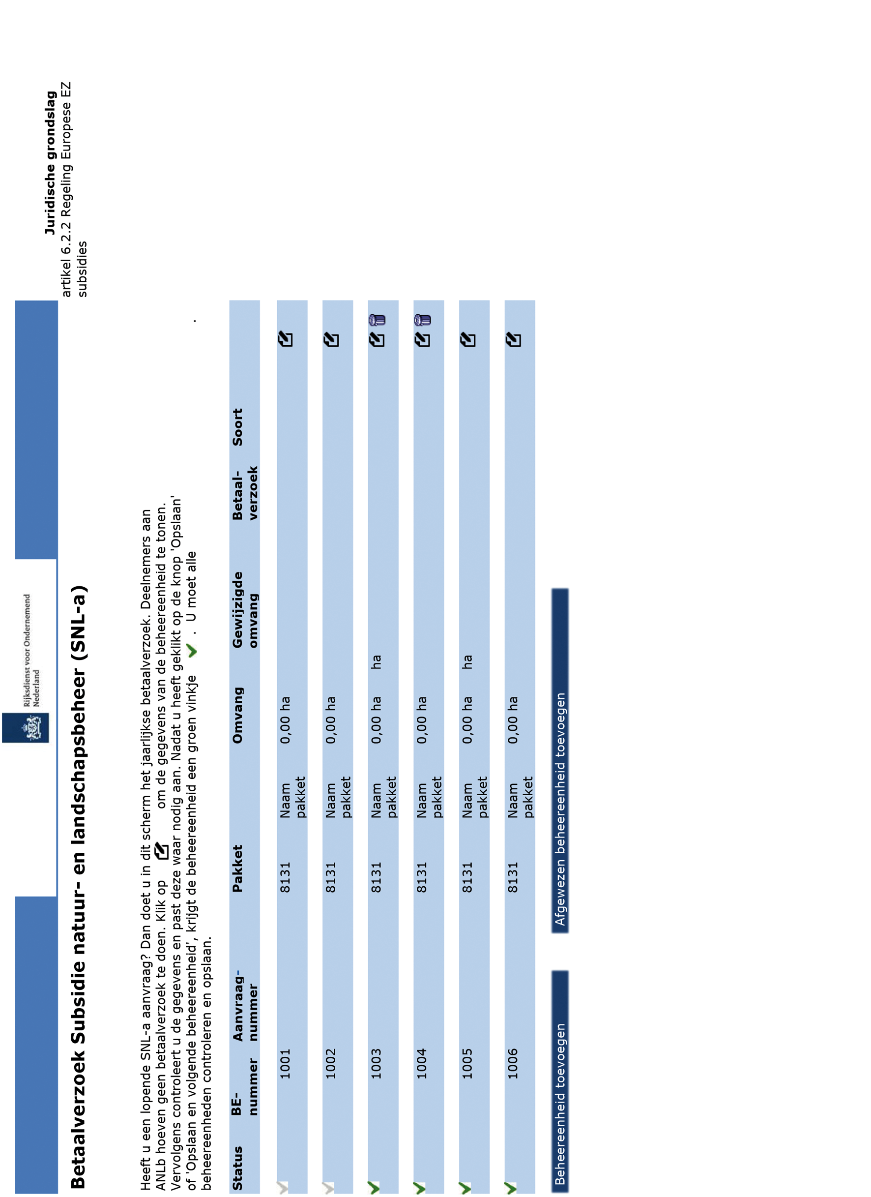 – het verstrekken van informatie of het indienen van een betaalverzoek als bedoeld in een Subsidieverordening natuur- en landschapsbeheer van een provincie: op basis van Verordening (EU) nr. 1305/2013 en Verordening (EU) nr. 1306/2013 van het Europees Parlement en de Raad van 17 december 2013 inzake de financiering, het beheer en de monitoring van het gemeenschappelijk landbouwbeleid en tot intrekking van Verordeningen (EEG) nr 352/78, (EG) nr 165/94 (EG), nr. 2799/98, (EG) nr. 814/2000, (EG) nr. 1290/2005 en (EG) nr. 485/2008 van de Raad (PbEU 2013 L 347) (hierna: Verordening 1306/2013);