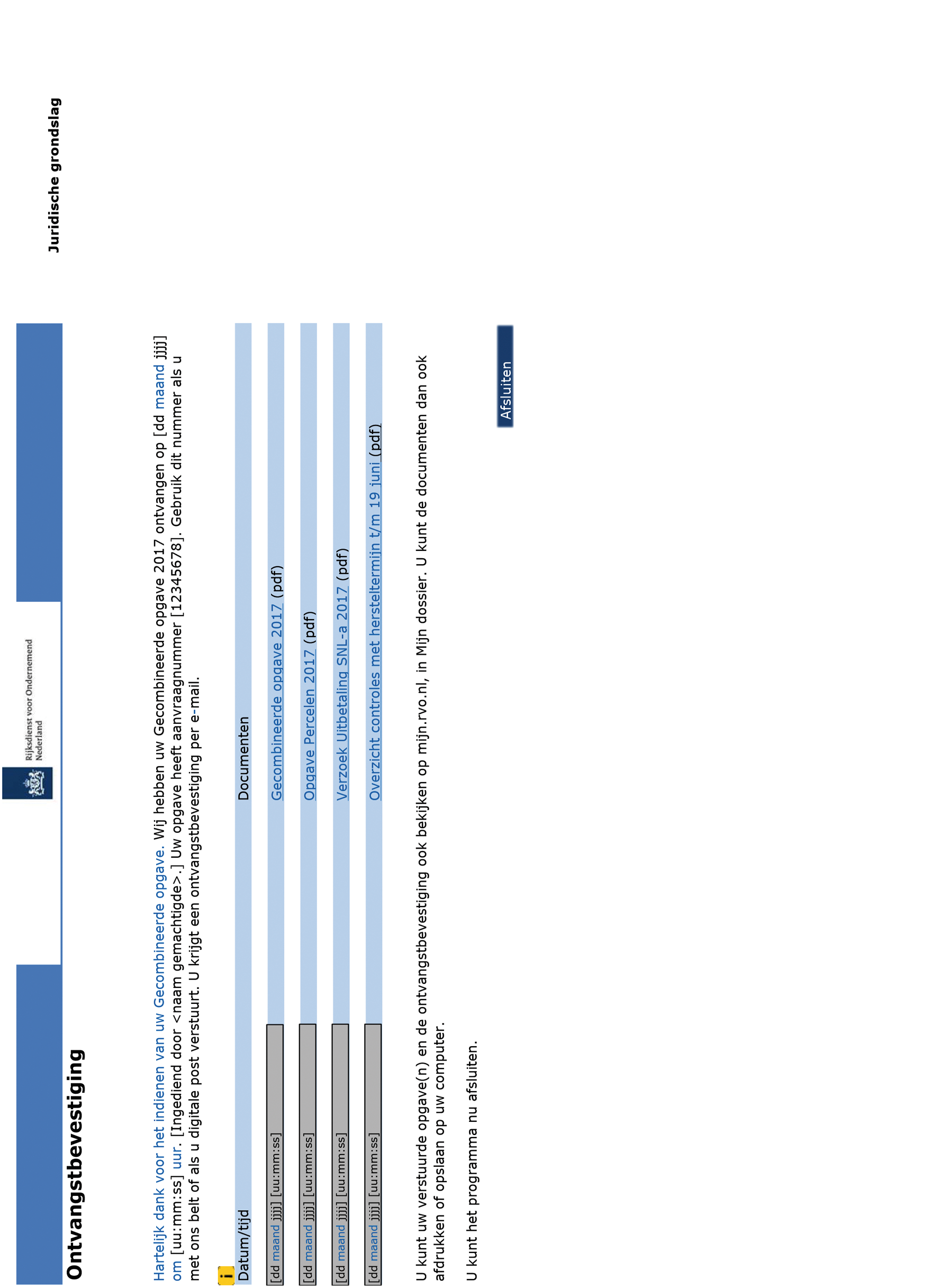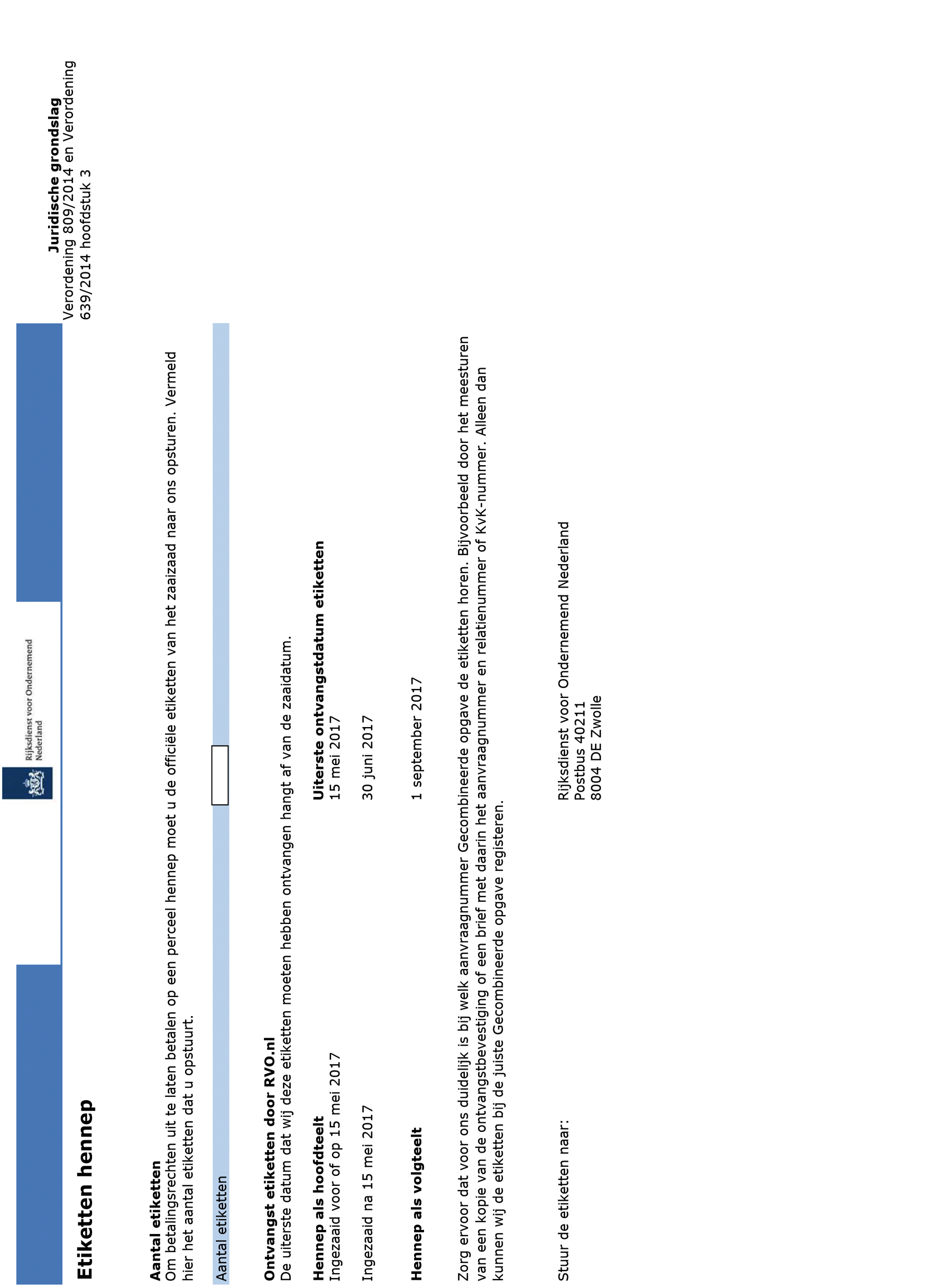 De mogelijkheid om de gecombineerde opgave te doen is verruimd ten opzichte van voorgaande jaren en vangt al aan na vaststelling en publicatie van de Regeling, de reguliere peildata blijven ongewijzigd. Een belangrijke overweging hierbij is om een spreiding van de werklast te bewerkstellingen voor zowel aanvragers als bij de verwerking en in het verlengde hiervan te komen tot het vroegtijdig afronden van de rechtstreekse betalingen. De sluitingsdatum blijft gehandhaafd op 15 mei 2017 om 24:00 uur (Midden-Europese tijd). Voor de verzamelaanvraag voor de rechtstreekse betalingen Gemeenschappelijk Landbouwbeleid en de steunregelingen van het plattelandsontwikkelingsprogramma volgen sluitingsdatum en -tijdstip uit de Europese verordeningen. Voor de opgave gebruik gewaspercelen volgen deze uit artikel 26, eerste lid, van het Uitvoeringsbesluit Meststoffenwet. Voor wat betreft de landbouwtelling en opgave Diergezondheidsfonds volgt de sluitingsdatum uit artikel 2, vierde lid, van deze regeling. Net als in voorgaande jaren is opgave voor deelname aan het programma agrarisch natuurbeheer (SNL-a) mogelijk vanaf 1 april. Om het hele proces van opgave te begeleiden en te stroomlijnen, communiceert RVO.nl hier nadrukkelijk over. Ondernemers in de land- en tuinbouw ontvangen gespreid over de maand maart 2017 een brief van de Minister waarin wordt aangekondigd dat zij voor wat betreft 2017 als opgaveplichtig zijn aangemerkt.