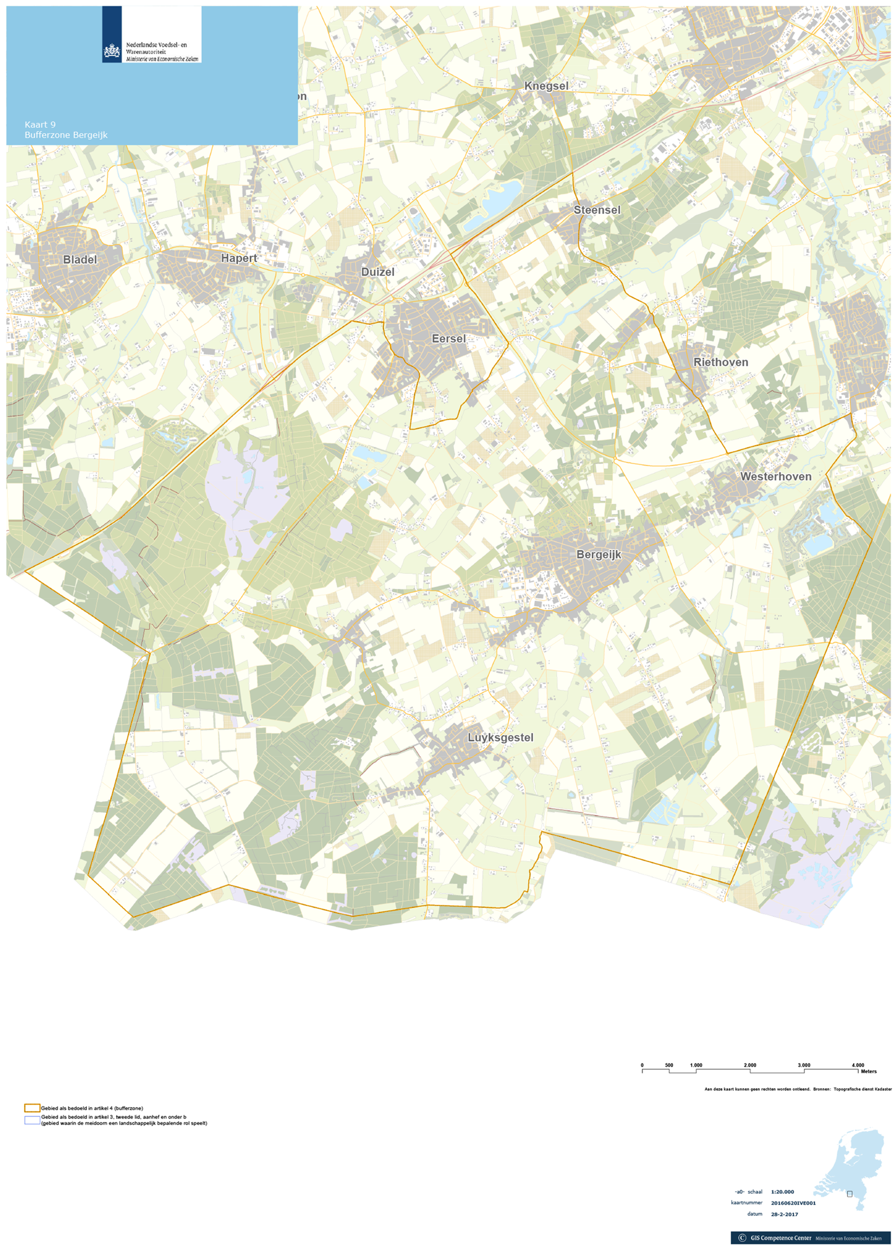 De bufferzones Meeden, Noordoostpolder, Flevoland, Boskoop en Bergeijk zijn ongewijzigd. Wel is in de legenda van de kaarten van deze bufferzones, zoals ook bij de andere bufferzones het geval is, de toelichting aangepast aan de vigerende wetgeving.