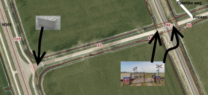 Op het moment dat de spoorwegovergang op de Voslaan afgesloten is met hekwerk is het risico aanwezig dat gemotoriseerd verkeer nog een tijdje door navigatiesystemen of gewoontegedrag de Voslaan inrijdt. Gezien de wegbreedte van de Voslaan zullen deze voertuigen de Voslaan achteruit moeten verlaten. Hiermee draaien ze ook achteruit de N361 op, met alle risico's van dien. Door langs de N361 tijdelijk omleidingsborden te plaatsen en door de Voslaan aan de zijde van de N361 fysiek dicht te zetten voor gemotoriseerd verkeer (middels een obstakel) worden dit risico tot een minimum beperkt. Het dichtzetten van de Voslaan aan de zijde van de N361 voor alle verkeer is niet wenselijk in verband met de bereikbaarheid van een herdenkingshek (aan een treinramp in 1980). Om deze reden krijgen fietsers en voetgangers de mogelijkheid om het betreffende obstakel te passeren. Dankzij het hekwerk bij de spoorwegovergang op de Voslaan kunnen ze vervolgens geen gebruik maken van deze spoorwegovergang.