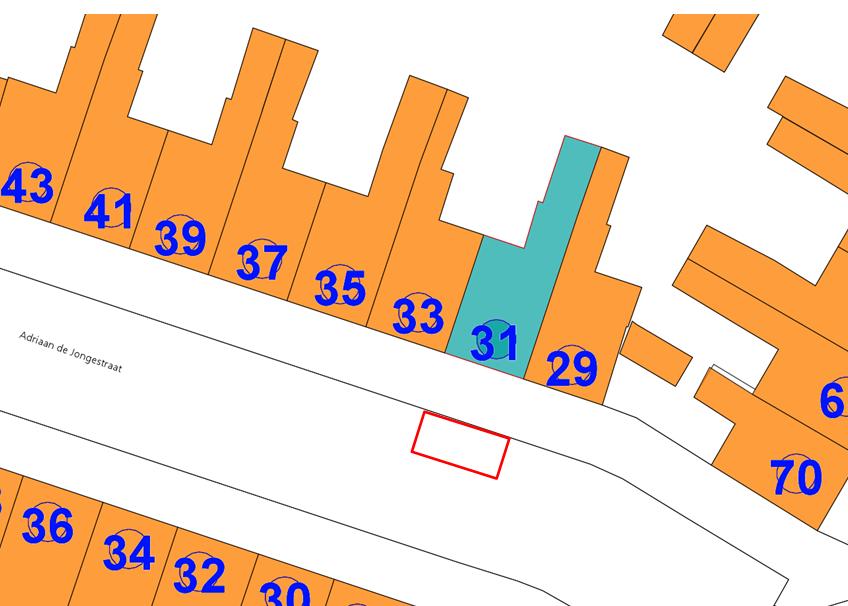 Het aanwijzen van een gehandicaptenparkeerplaats op kenteken ter hoogte van Adriaan de Jongestraat 31 door het plaatsen van een bord model E6 (RVV 1990 bijlage 1) voorzien van een onderbord met daarop het kenteken van het voertuig dat in gebruik is bij/ten behoeve van de aanvrager.