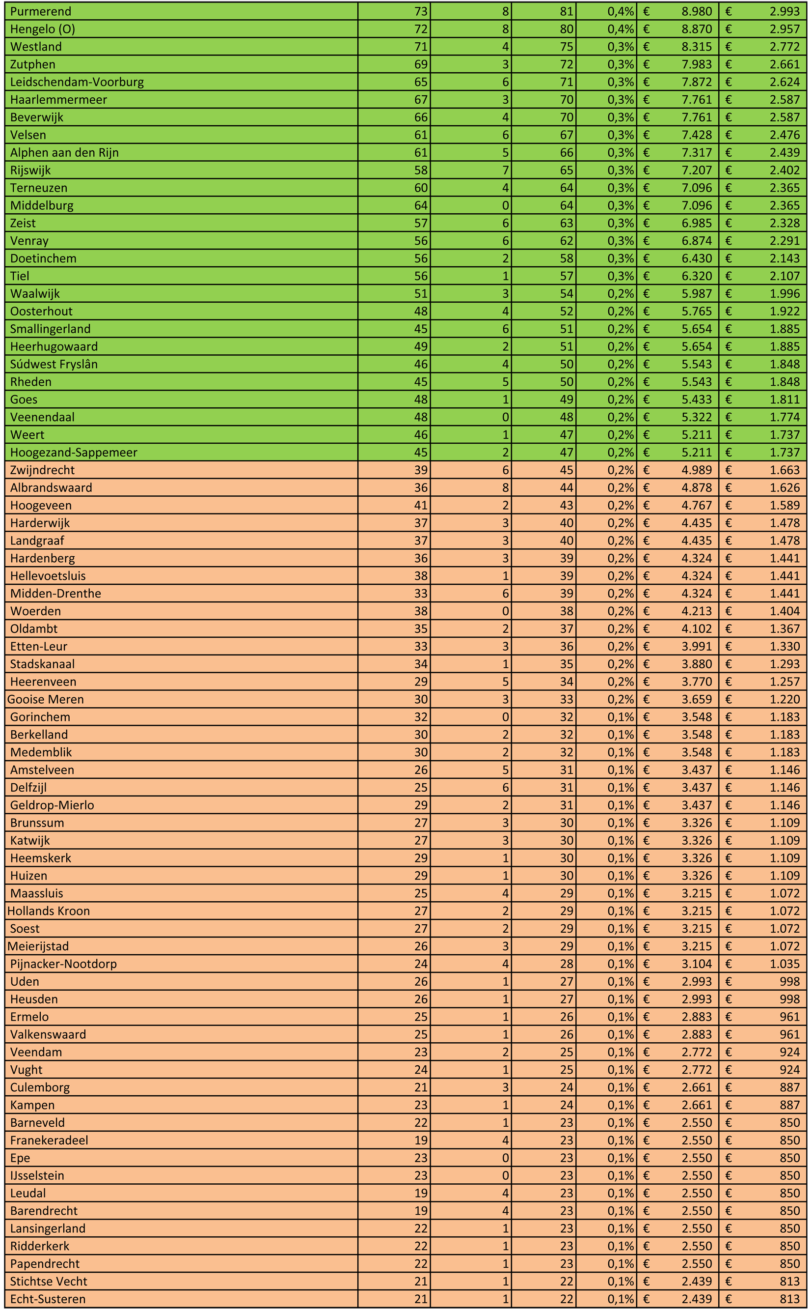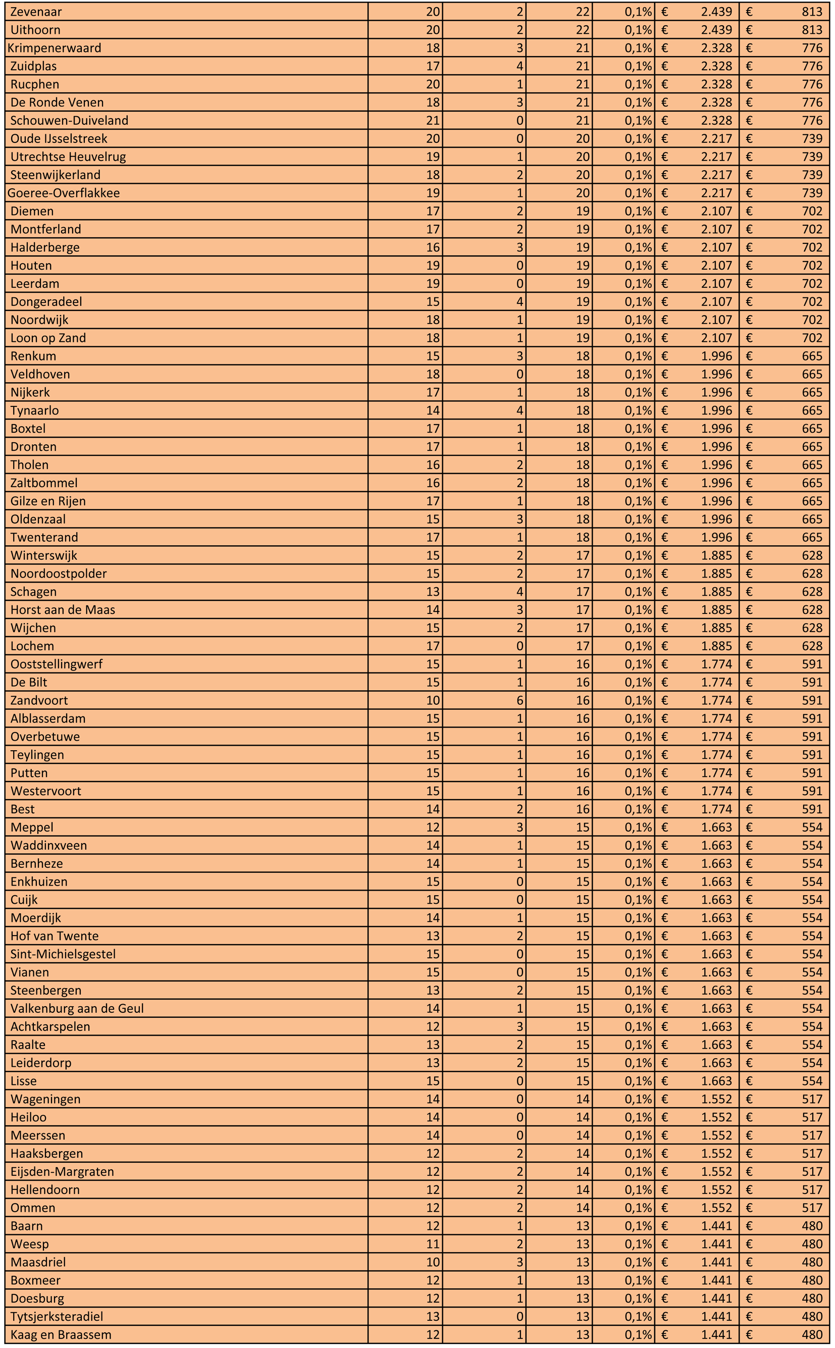 Per gemeente wordt maximaal het volgende bedrag aan bijdrage toegekend (exclusief een eventuele verhoging vanwege niet-gebruikte middelen van andere gemeenten):