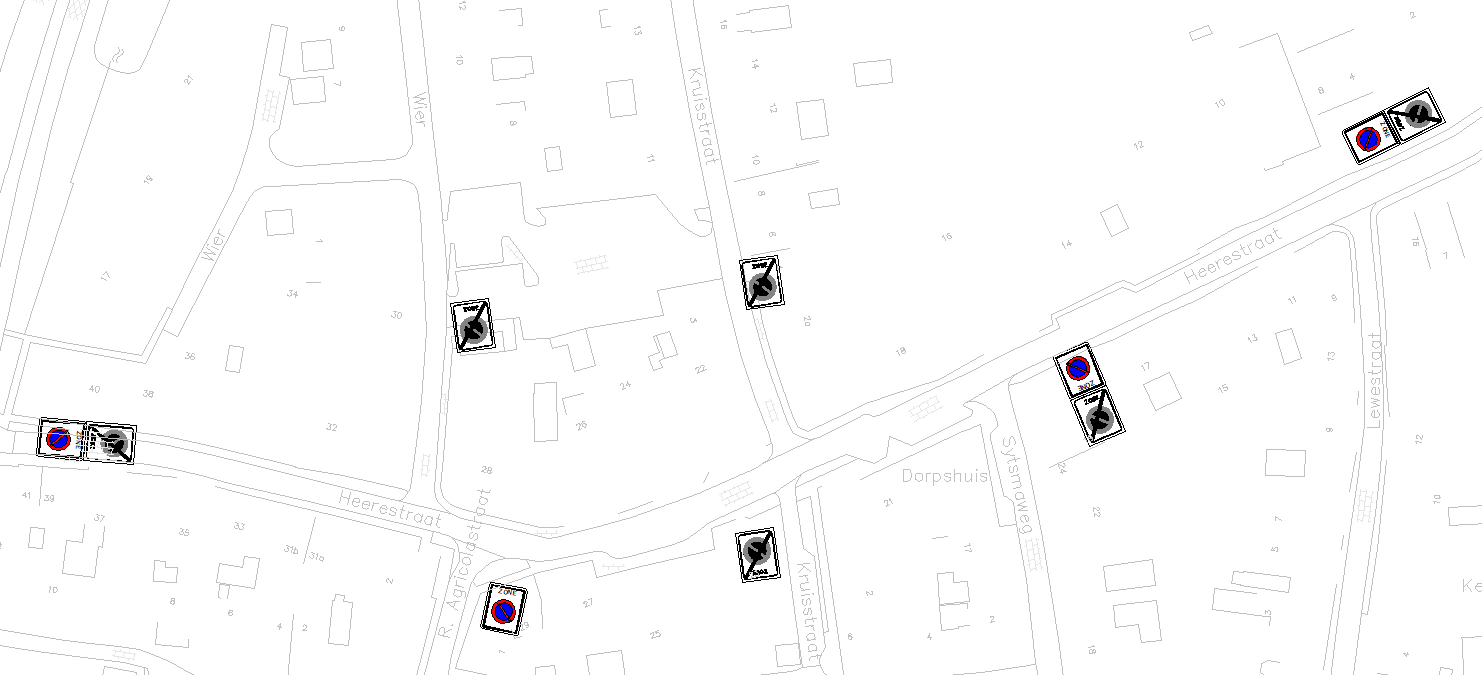 · 1. Op de Heerestrat tussen de Gebroeders Gootjesstraat en Lewestraat wordt een parkeerverbodszone ingesteld. Dit gebeurt door het plaatsen van verkeersborden of portalen model E01 (conform bijlage 1 van het Reglement Verkeersregels en Verkeerstekens).
