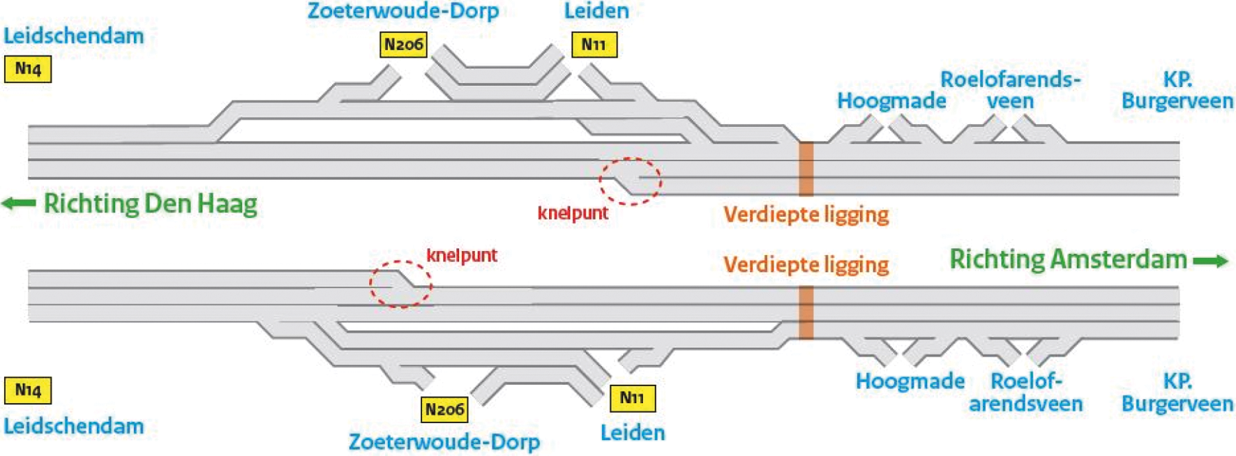 Daarbij worden ook maatregelen op het gebied van verkeersmanagement en Smart Mobility beschouwd. Ook worden mogelijke maatregelen op het onderliggend wegennet, en aanpassingen aan het huidige wegennet niet uitgesloten. Voor de problematiek op de A4 tussen de N14 en knooppunt Burgerveen is € 50 mln. gereserveerd vanuit de middelen die zijn vrijgekomen bij de verlenging van het Infrastructuurfonds van 2028 naar 2030.