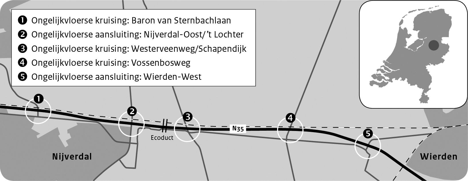 Zowel de doorstroming van het verkeer als de verkeersveiligheid op de N35 tussen Nijverdal en Wierden vormt een probleem. De verkeersdrukte neemt de komende jaren verder toe, waardoor ook de problemen toenemen, zoals files en verkeersongevallen. Om de doorstroming en de verkeersveiligheid op en rond dit tracé te verbeteren, wil de Minister van Infrastructuur en Waterstaat samen met de provincie Overijssel en de gemeenten in de regio dit deel van de N35 opwaarderen naar een autoweg. Rijkswaterstaat neemt de uitvoering op zich. De weg krijgt twee rijbanen met elk twee rijstroken, een maximum toegestane snelheid van 100 km/h en ongelijkvloerse kruisingen en aansluitingen.