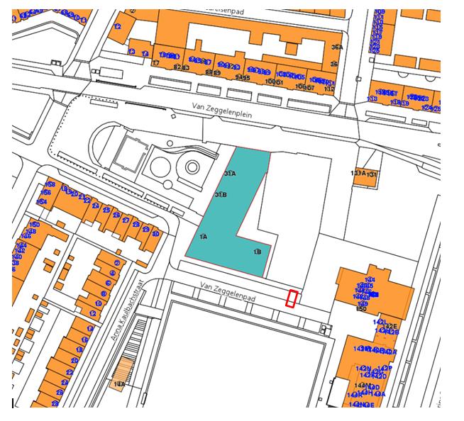Het aanwijzen van een gehandicaptenparkeerplaats op kenteken ter hoogte van Van Zeggelenpad 1B door het plaatsen van een bord model E6 (RVV 1990 bijlage 1) voorzien van een onderbord met daarop het kenteken van het voertuig dat in gebruik is bij/ten behoeve van de aanvrager.