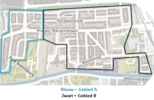 Op bijgaande figuur zijn deze straten opgenomen in gebied A