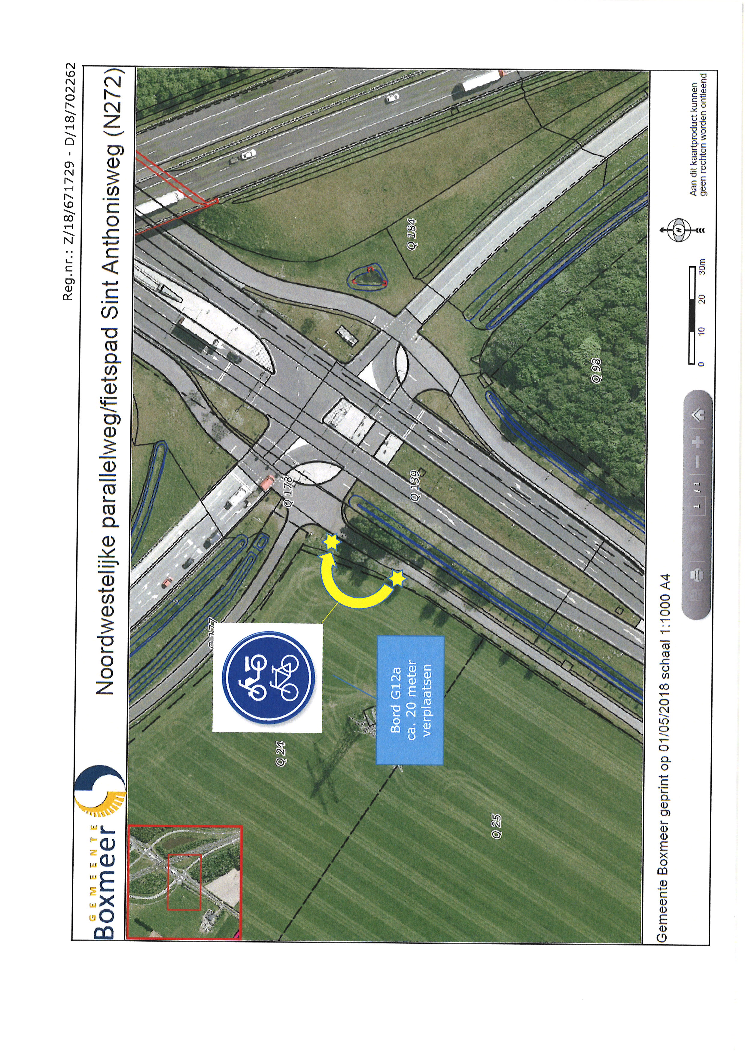 door het verplaatsen van verkeerstekens op borden volgens model G12a en door het verwijderen van verkeerstekens op borden volgens model L08 met onderbord OB54 van bijlage 1 van het Reglement Verkeersregels en Verkeerstekens, het gedeelte van circa 20 meter van de noordwestelijke parallelweg van de Sint Anthonisweg (N272) bij de zuidelijke aansluiting met de A73 na de oversteek over de Sint Anthonisweg (N272) aan te wijzen als verplicht fiets/bromfietspad.