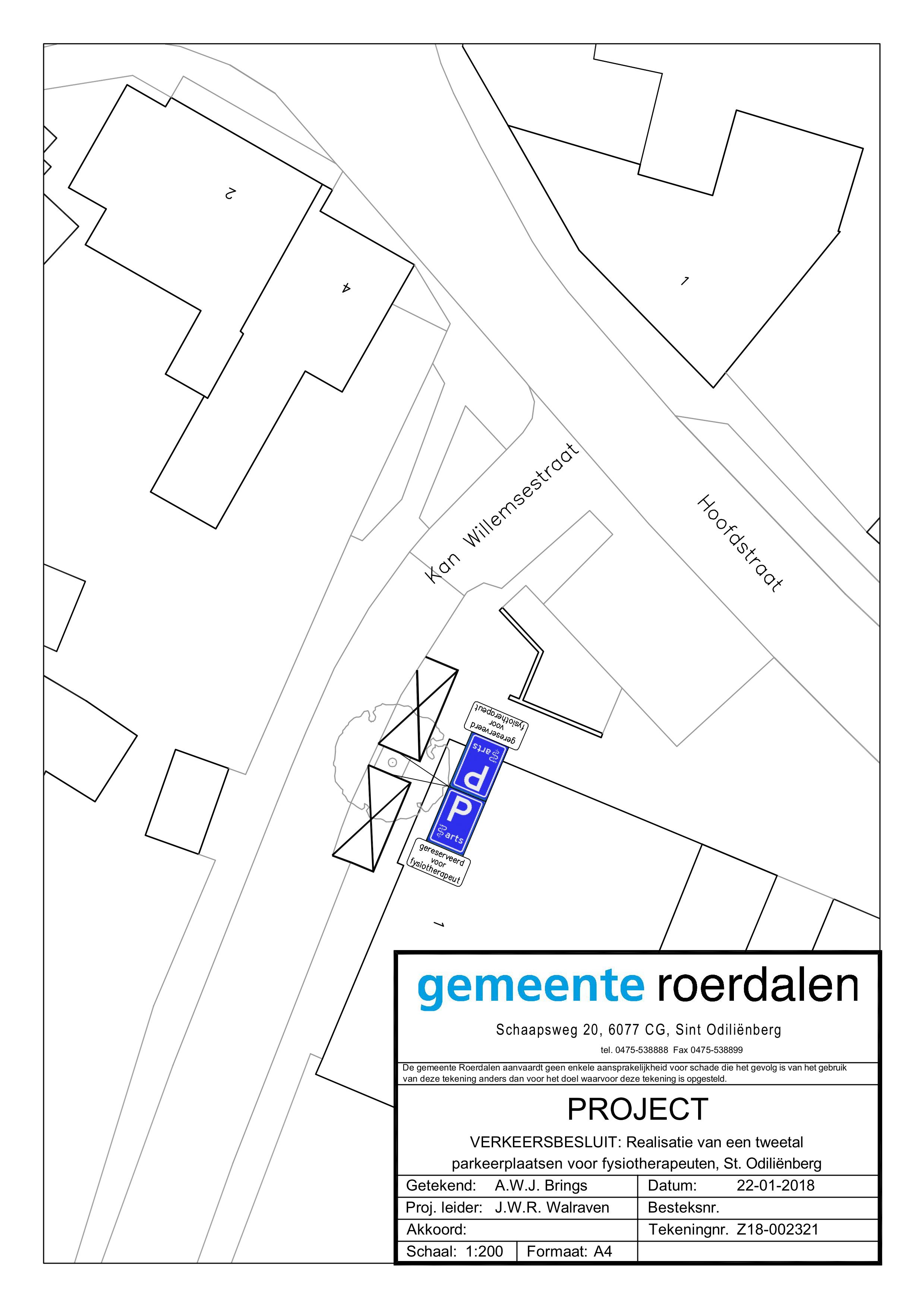 Verkeersbesluit: Realisatie van een tweetal parkeerplaatsen voor fysiotherapeuten, Sint Odiliënberg.