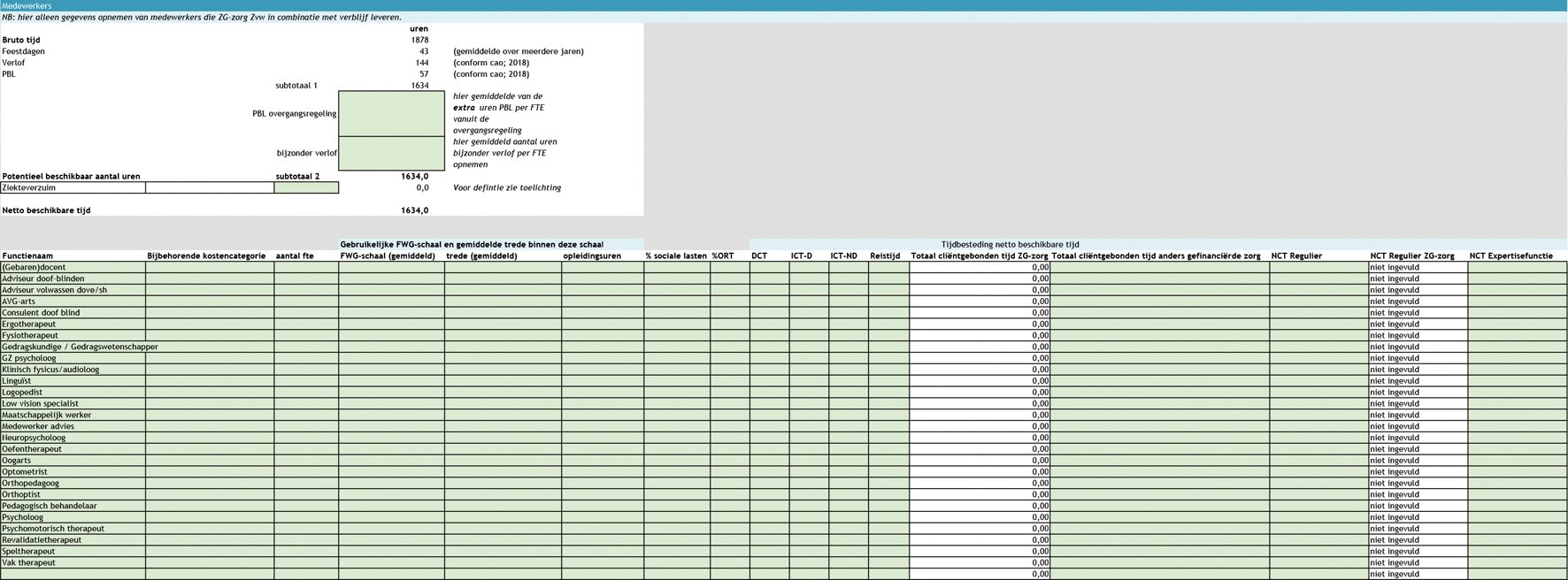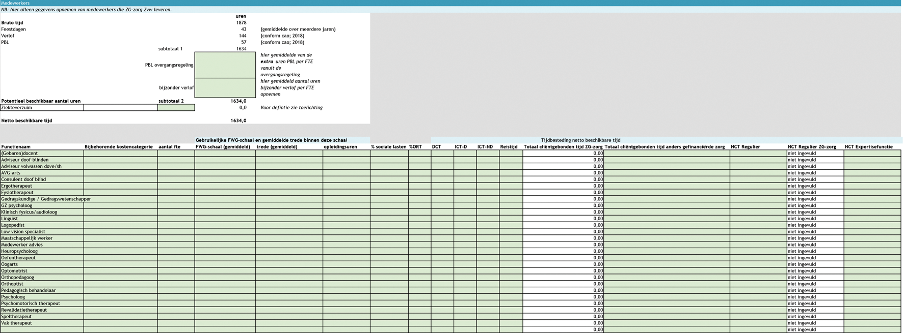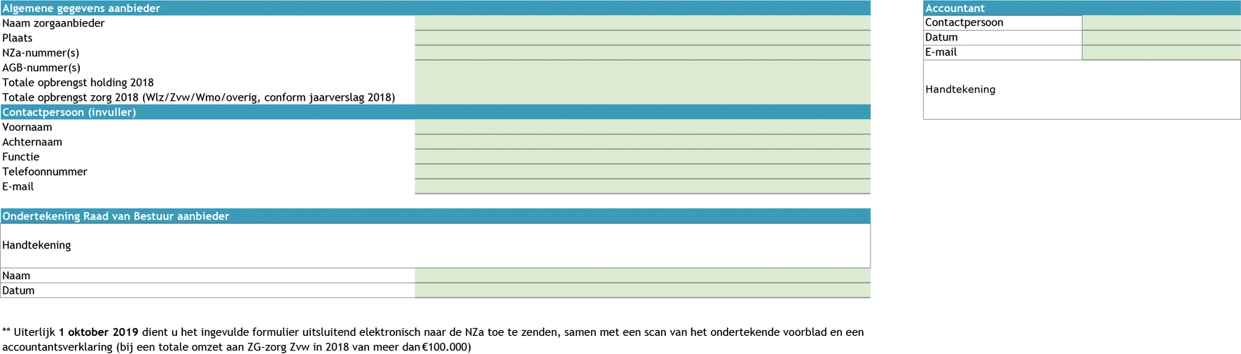 De zorgaanbieder vult het door de NZa beschikbaar gestelde formulier (bijlage 3 bij NR/REG-1808a ‘Aanleverformulier kostengegevens ZG-zorg 2017’) in, overeenkomstig met de aanwijzingen als gegeven n het formulier.