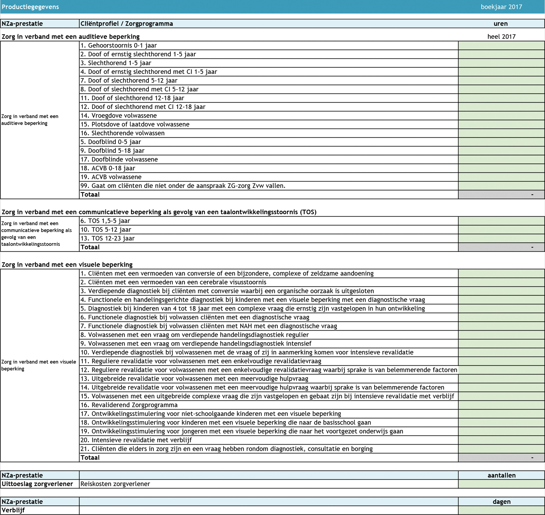 Met dit formulier dienen alle zorgaanbieders die in 2018 behandeling aan zintuiglijk
