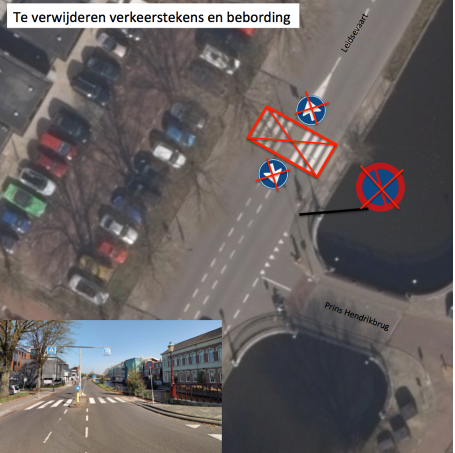 - door middel van het verwijderen van de verkeerstekens op het wegdek op de Leidsevaart direct ten noorden van de aansluiting met de Prins Hendrikbrug de voetgangersoversteekplaats op te heffen;