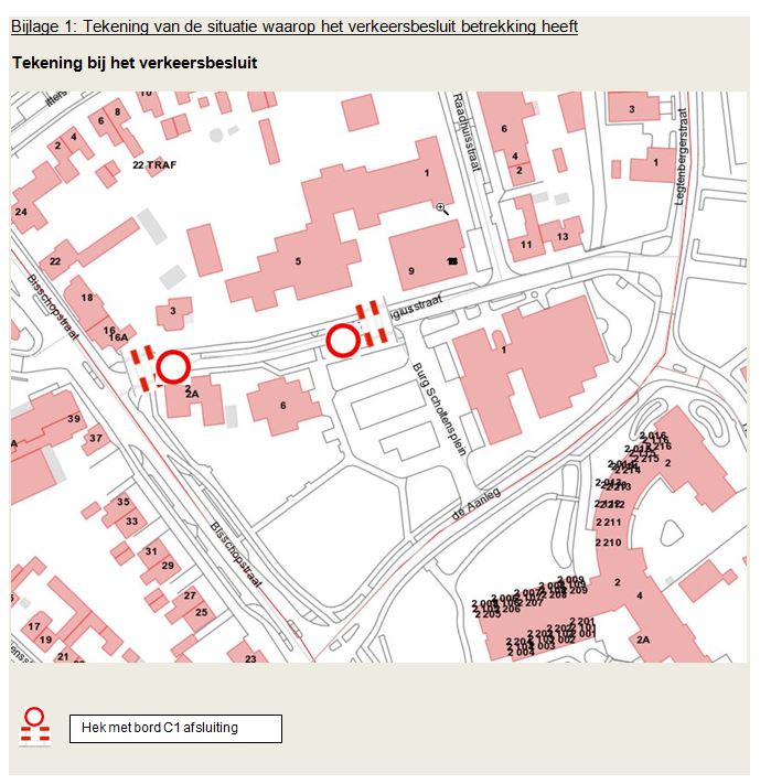 In de bijlage is de situatie te zien waarop het verkeersbesluit betrekking heeft.