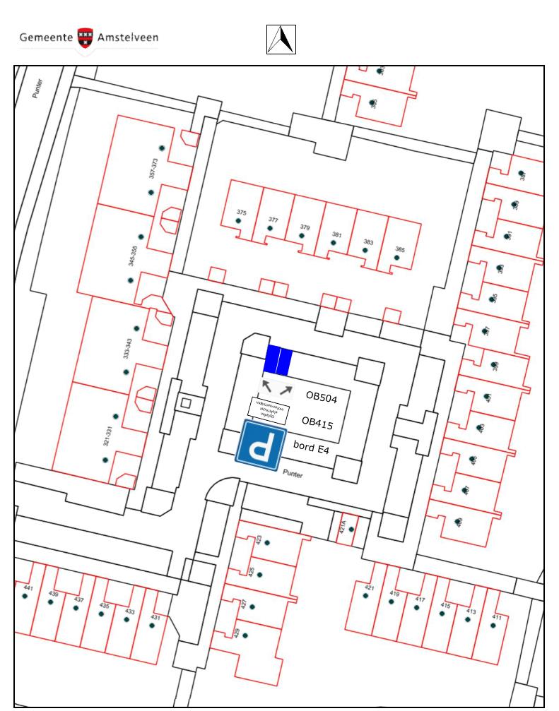 Burgemeester en wethouders van Amstelveen besluiten om op het hofje van Punter bij de woningen nummers 321 tot en met 421A (oneven nummers) twee bij elkaar gelegen parkeerplaatsen aan te wijzen als parkeerplaats bestemd voor het opladen van elektrische motorvoertuigen.