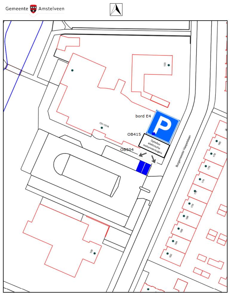 Burgemeester en wethouders van Amstelveen besluiten op het parkeerterrein naast bij het gebouw Burgemeester Haspelslaan 131 twee bij elkaar gelegen parkeerplaatsen aan te wijzen als parkeerplaats bestemd voor het opladen van elektrische motorvoertuigen.