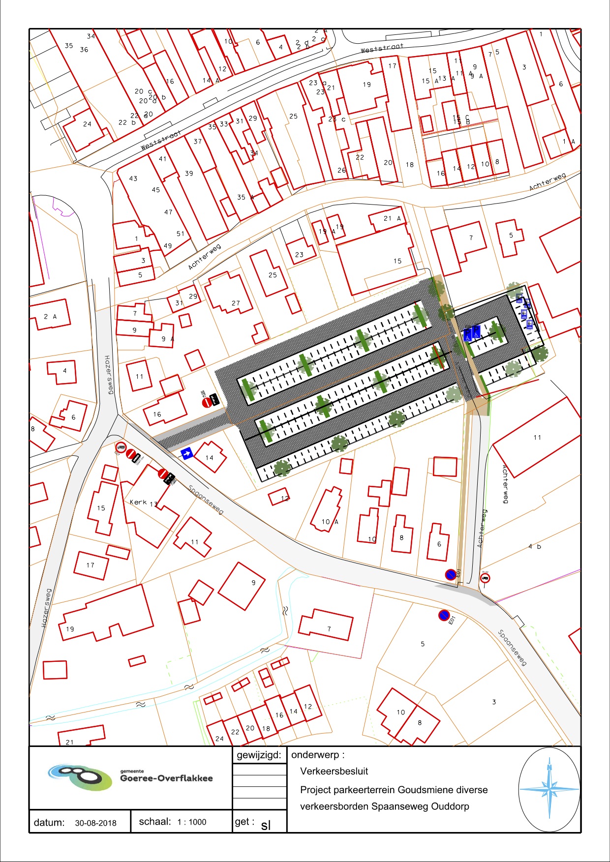 dat in het najaar van 2018 een nieuw parkeerterrein (Goudsmiene) wordt aangelegd ten noorden van de Spaanseweg;