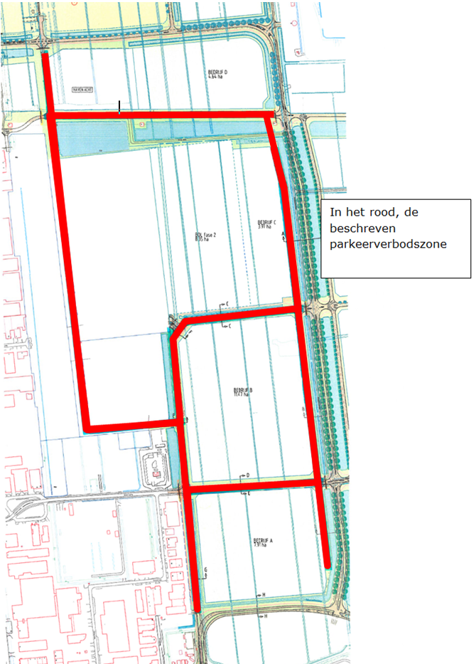dat de gemeente, vooruitlopend op de realisatie van de wegenstructuur de parkeerverbodszone wil realiseren om overlast tijdens de realisatie van het bedrijventerrein tegen te gaan;