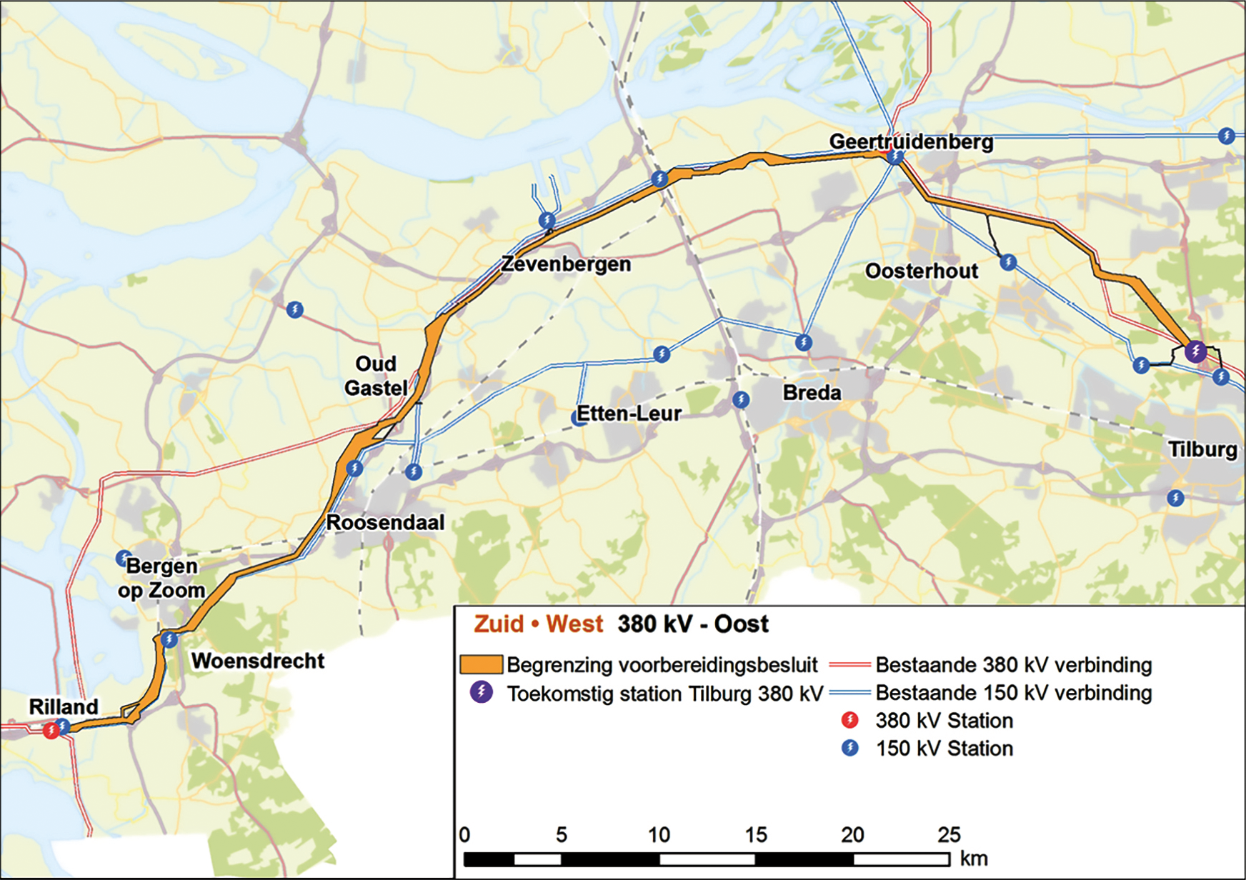 De Minister van Economische Zaken en Klimaat en de Minister van Binnenlandse Zaken en Koninkrijksrelaties bereiden een inpassingsplan voor waarin het tracé van de nieuwe hoogspanningsverbinding Zuid-West 380 kV Oost van het 380 kV-station Rilland naar het nieuw te bouwen 380 kV-station Tilburg wordt vastgelegd. In een inpassingsplan legt het Rijk de bestemming van de grond vast en de regels voor het gebruik ervan.