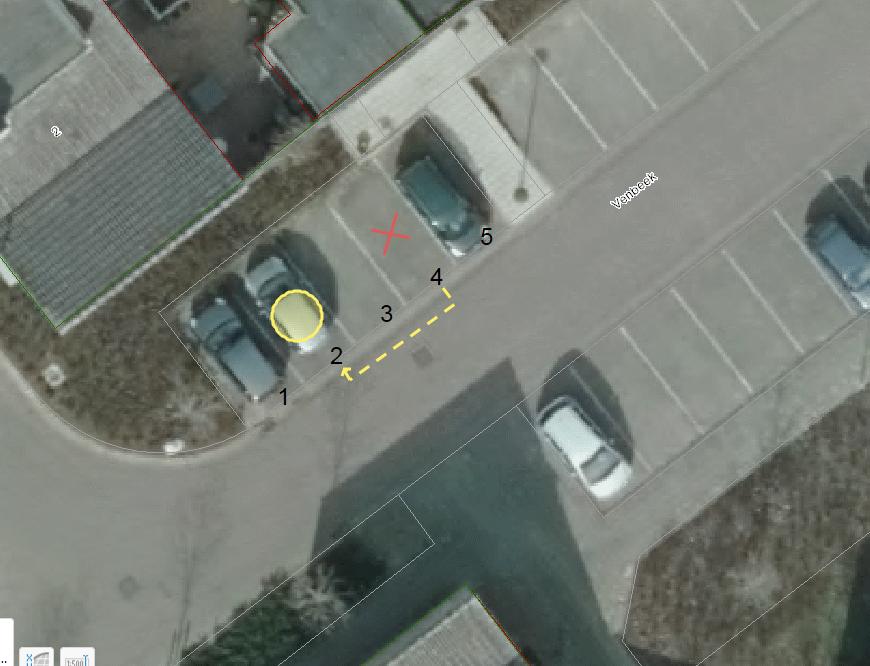 Op de foto behorend bij het verkeersbesluit is de situering van de beoogde parkeerplaats aangegeven met nummer 2.