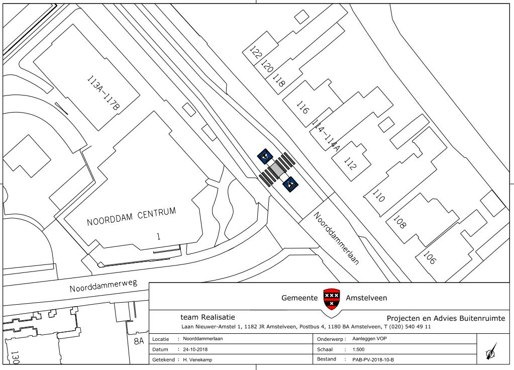 Burgemeester en wethouders van Amstelveen wijzen voetgangersoversteekplaatsen aan op de Legmeerdijk aan de oostkant van de kruising met de Vierlingsbeeklaan en in de Noorddammerlaan ten westen van de kruising met de Noorddammerweg, zoals aangegeven op de bijgevoegde tekeningen PAB-PV-2018-10A en PAB-PV-2018-10B.