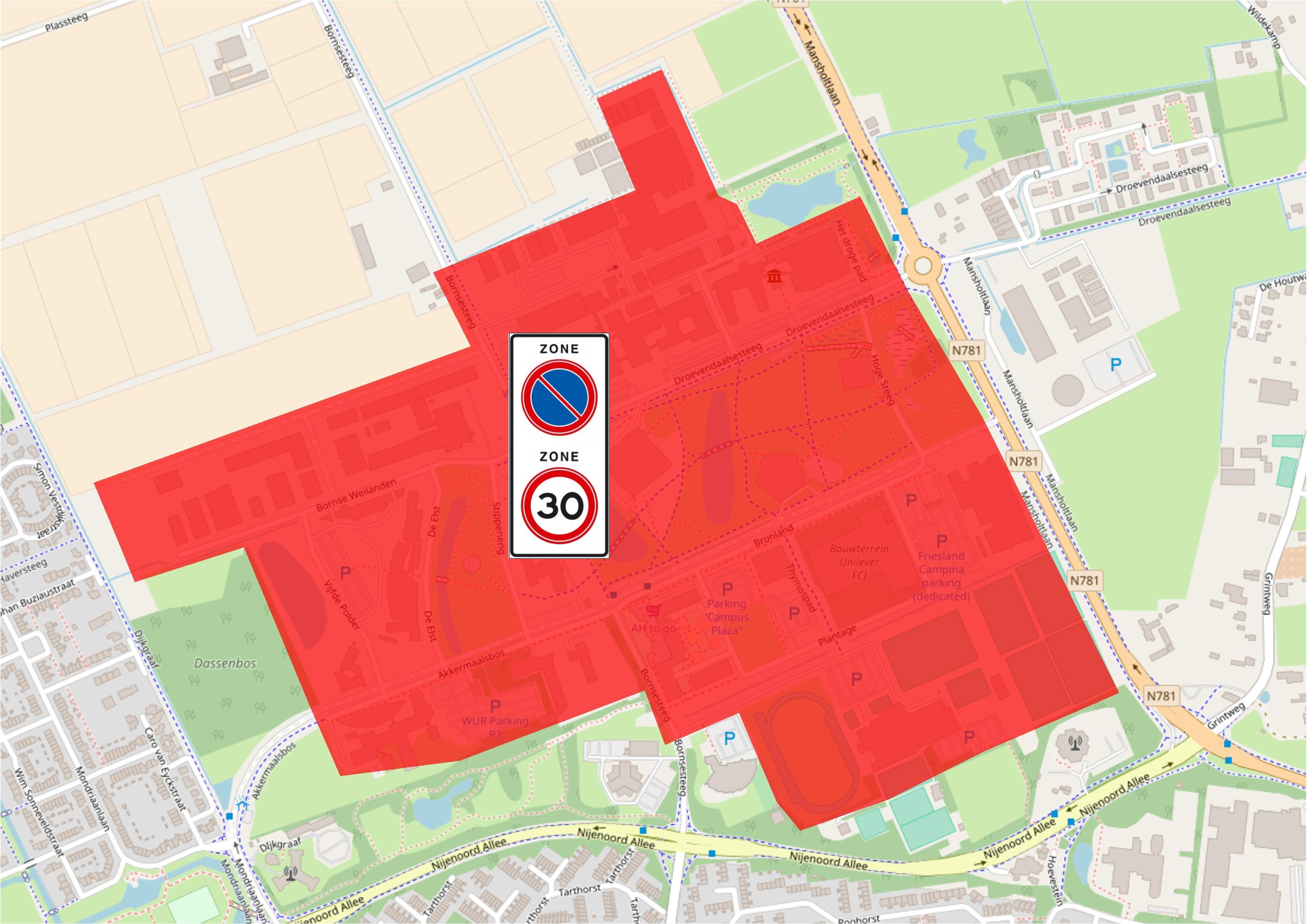 WUR-terrein: 30km/u-zone en parkeerverbodszone instellen