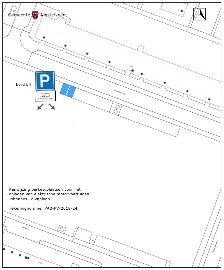 Dit gebeurt door het plaatsen van borden E4 van bijlage 1 van het Reglement verkeersregels en verkeerstekens 1990, met onderbord met opschrift “opladen elektrische motorvoertuigen” en een onderbord dat aangeeft dat de maatregel voor twee naast elkaar gelegen parkeerplaatsen geldt, zoals aangegeven op de bebordingstekeningen PAB-PV-2018-23 en 24.