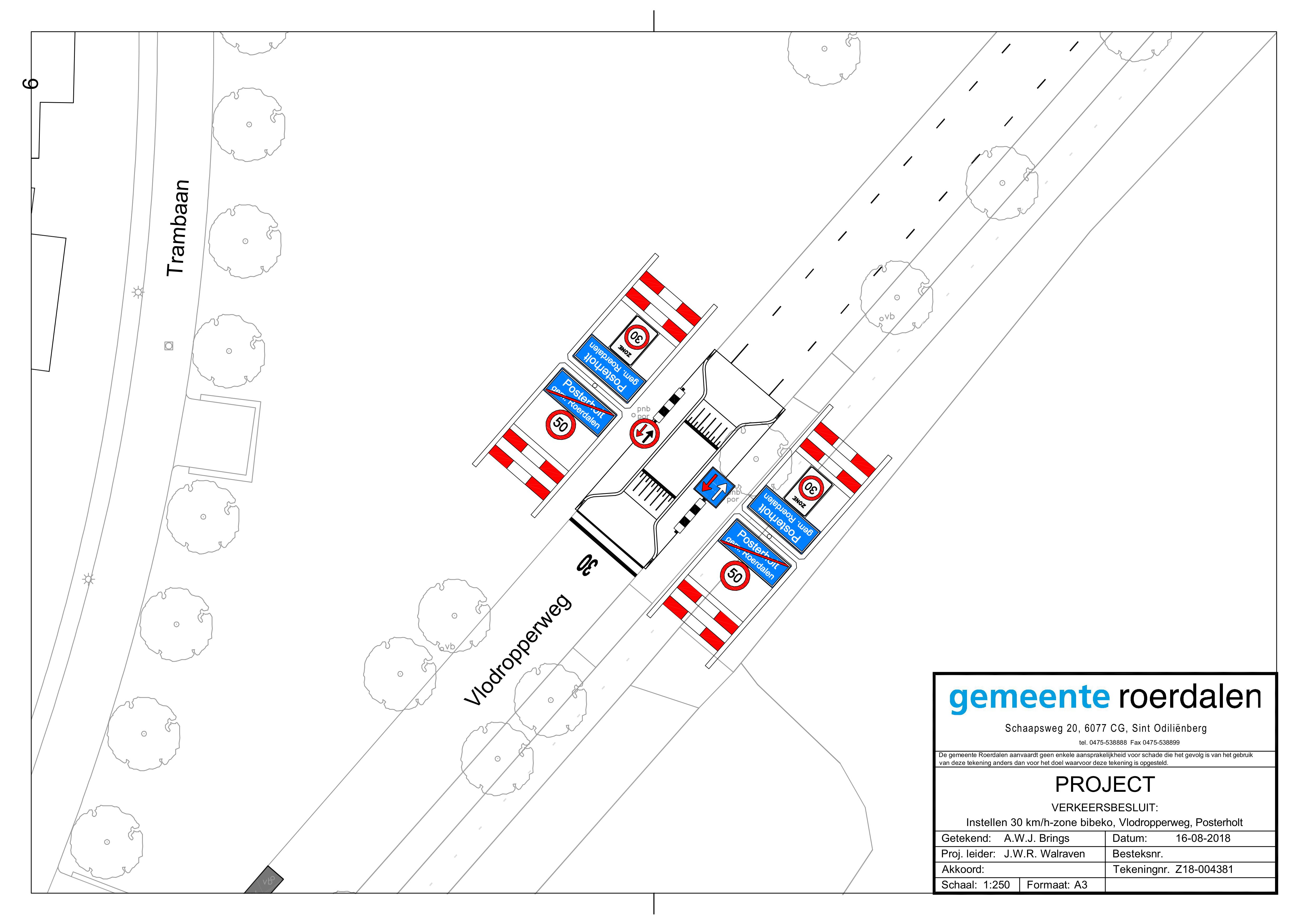 Verkeersbesluit: Instellen 30 km/h-zone binnen de bebouwde kom te Posterholt, Deelgebied: Vlodropperweg.