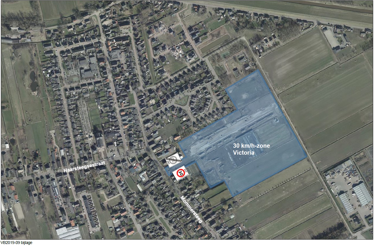 De maximumsnelheid in nieuwbouwwijk Victoria te Haarsteeg te wijzigen naar 30 km/h door middel van het instellen van een 30 km/h-zone op de volgende wegen;