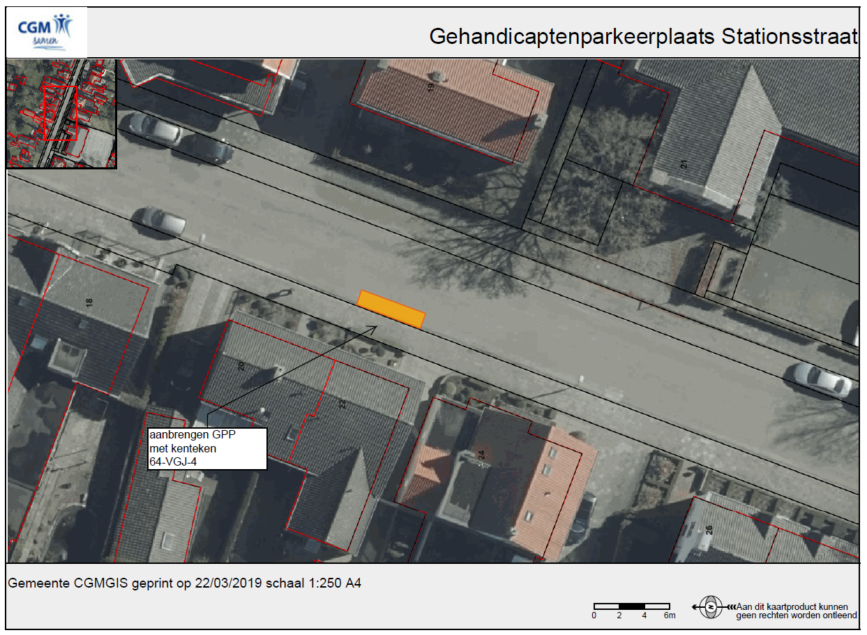 het aanwijzen van een gereserveerde gehandicaptenparkeerplaats in de openbare ruimte van de Stationsstraat te Mill overeenkomstig de bij dit besluit behorende en zodanig gewaarmerkte tekening;