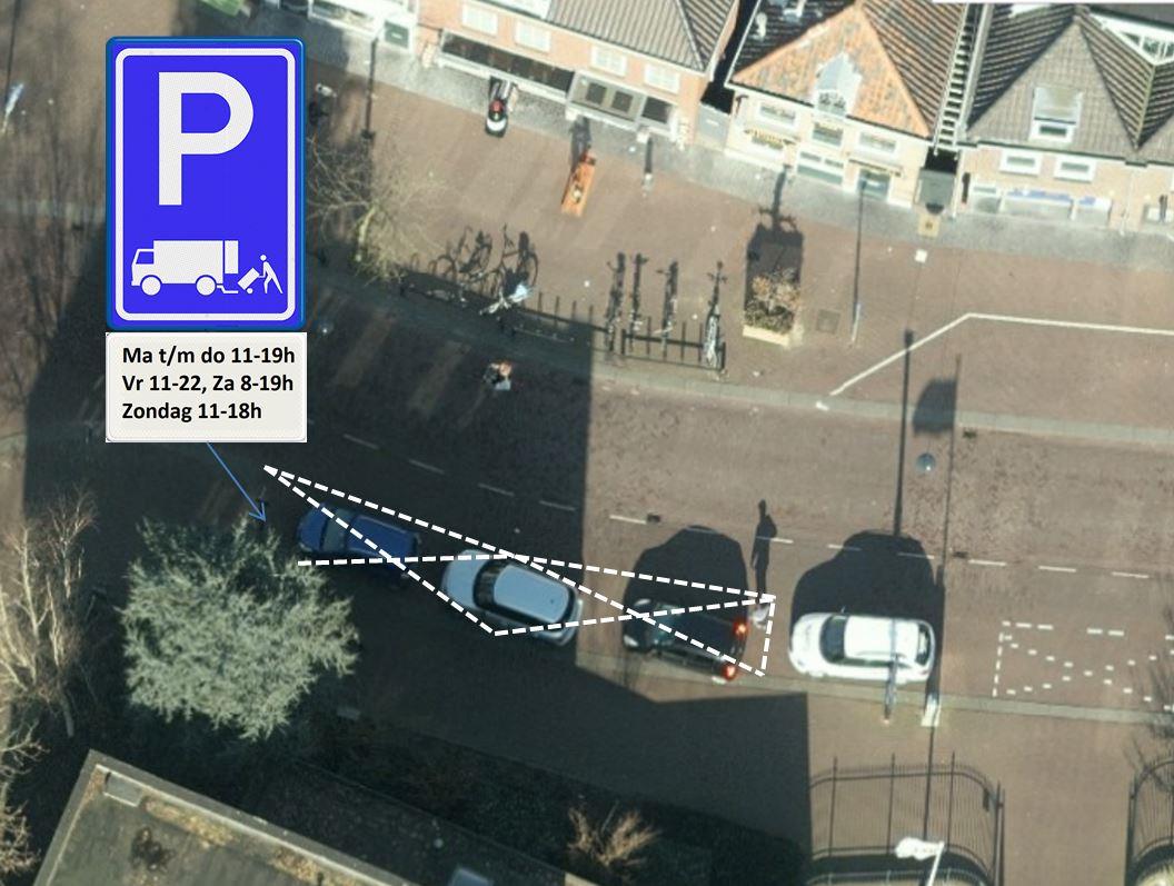 Door de laad- en losplaats zullen vanaf een uur voor de venstertijden tot een uur erna vier parkeerplaatsen komen te vervallen. Buiten de venstertijden zijn deze parkeerplaatsen wel te gebruiken.