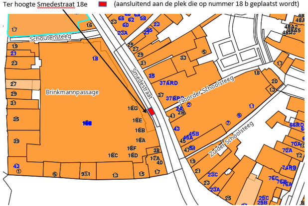 Het aanwijzen van een gehandicaptenparkeerplaats op kenteken ter hoogte van Smedestraat 18e door het plaatsen van een bord model E6 (RVV 1990 bijlage 1) voorzien van een onderbord met daarop het kenteken van het voertuig dat in gebruik is bij/ten behoeve van de aanvrager.