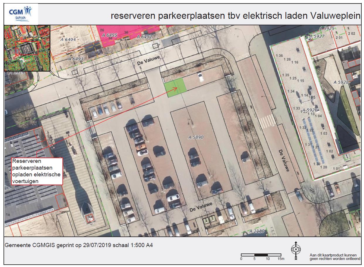 •het aanwijzen van twee parkeerplaatsen als parkeer- en oplaadvoorziening voor elektrische voertuigen op De Valuwe te Cuijk door het plaatsen van bord E4 van Bijlage 1 van het Reglement Verkeersregels en Verkeerstekens 1990 met het onderbord met het opschrift: ‘ opladen elektrische voertuigen’ en onderbord OB504 conform de bij dit besluit behorende en als zodanig gewaarmerkte tekening;