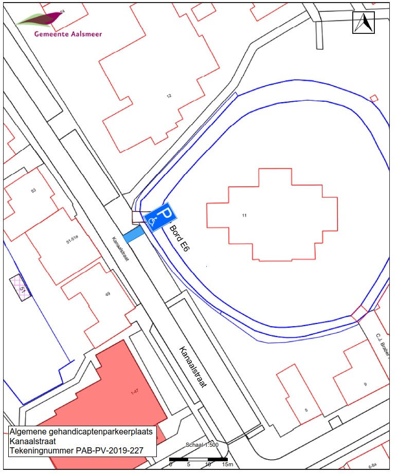 Burgemeester en wethouders van Aalsmeer besluiten om in de Kanaalstraat ter hoogte van de Dorpskerk een gehandicaptenparkeerplaats aan te wijzen.