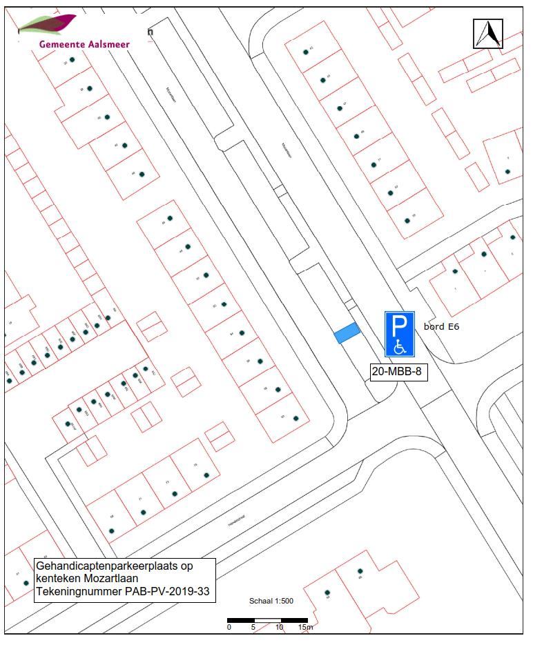 Burgemeester en wethouders van Aalsmeer besluiten het parkeren te verbieden op een parkeerplaats in de Mozartlaan, zoals aangegeven op tekening PAB-PV-2019-33, met uitzondering van het voertuig met het kenteken 20-MBB-8 (gehandicaptenparkeerplaats).