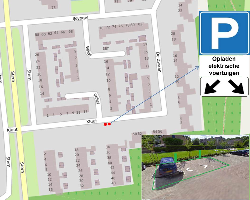 Het reserveren van parkeerplaatsen is een taak van de gemeente Dongeradeel. Het reserveren van vier parkeerplaatsen voor elektrische voertuigen op de Kluut kan door het plaatsen van twee verkeersborden type E4, met een onderbord met de tekst “opladen elektrische voertuigen” en een onderbord met twee pijlen. De gereserveerde parkeerplaatsen bij een oplaadpaal mogen door iedereen gebruikt worden om een elektrisch voertuig op te laden. Het is dus geen parkeerplaats voor een specifiek persoon. Het parkeren van niet-elektrische voertuigen, die niet opladen bij de laadpaal, moeten worden vermeden.