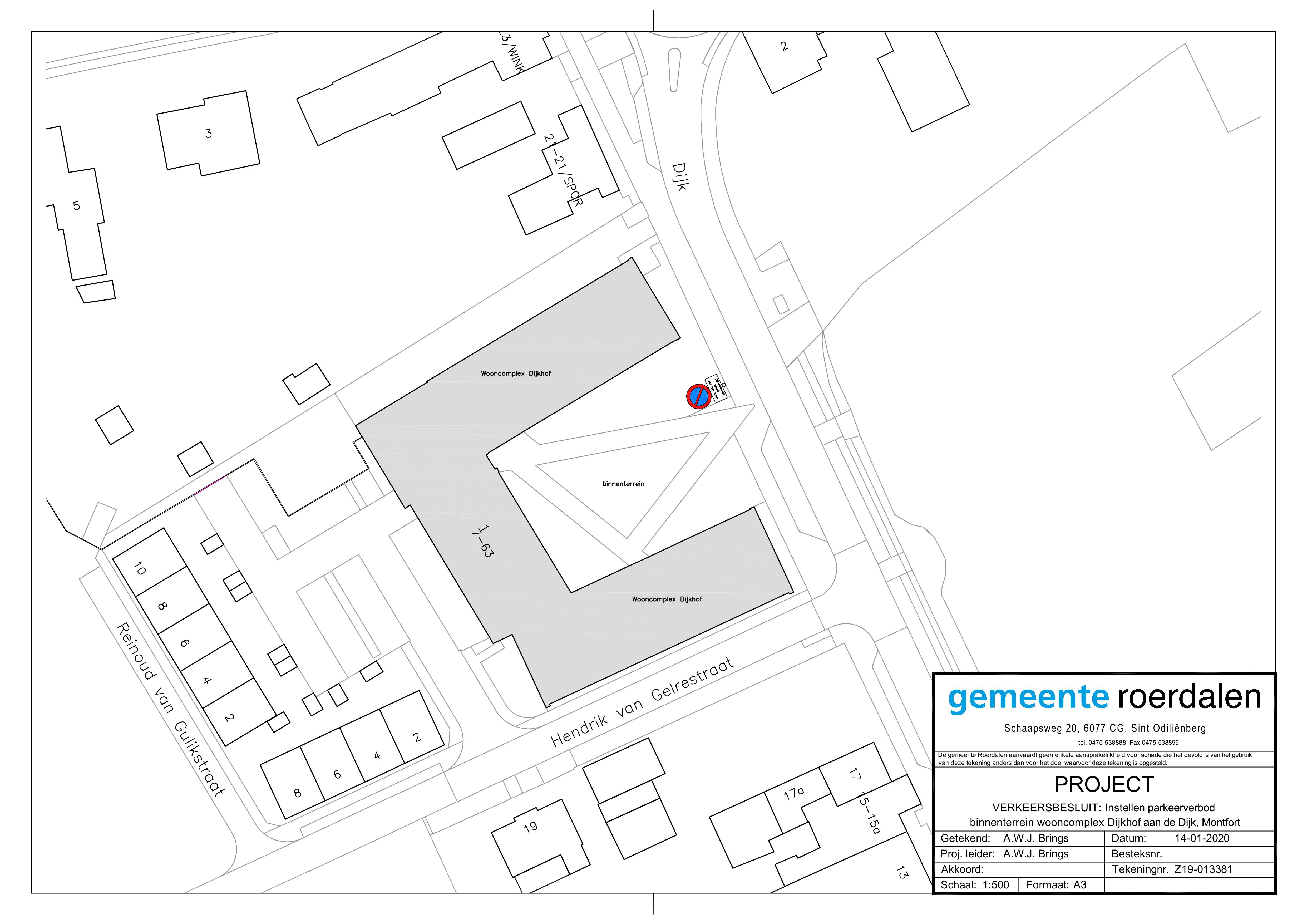 Een parkeerverbod in te stellen op het binnenterrein wooncomplex Dijkhof gelegen aan de Dijk in Montfort.
