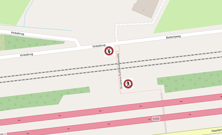 - door middel van het plaatsen van verkeersborden en C16 van bijlage 1 van het RVV 1990, inclusief het plaatsen van hekwerken, een geslotenverklaring voor voetgangers in te stellen op het voetpad, tussen de aansluitingen met de Batterijweg/Vinkebrug en de Haarlemmerstraatweg;